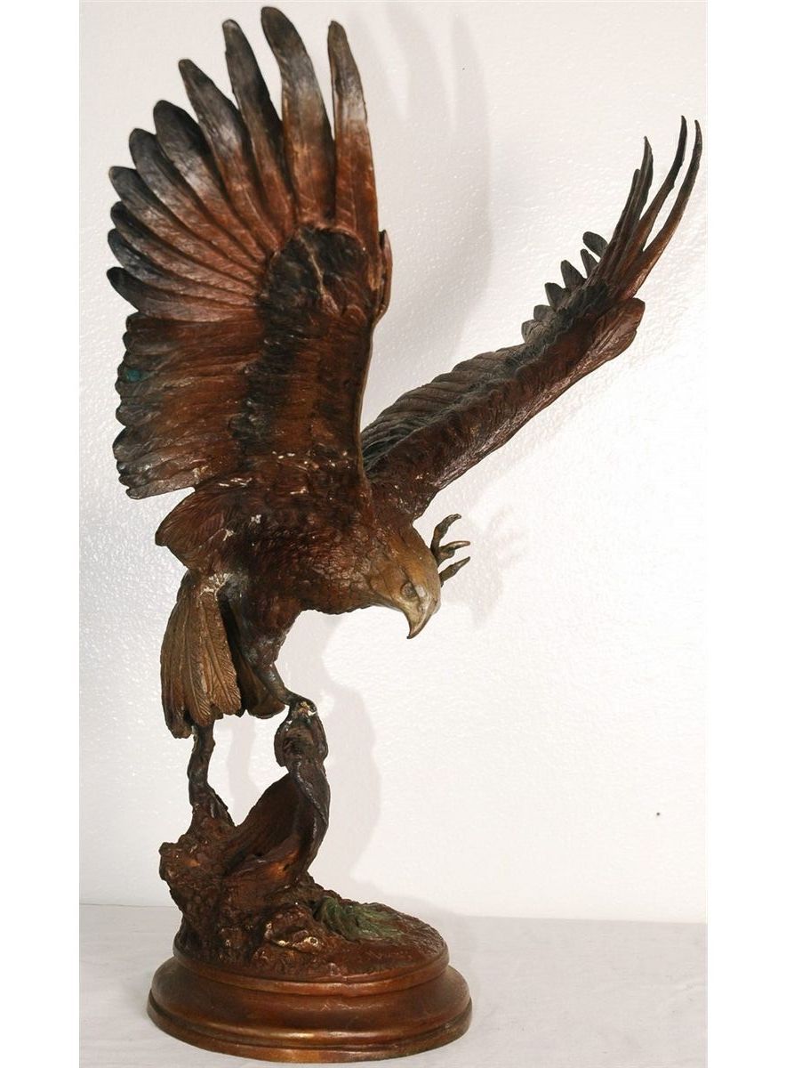Bronze statue of a falcon in flight. 22"H x 18"W