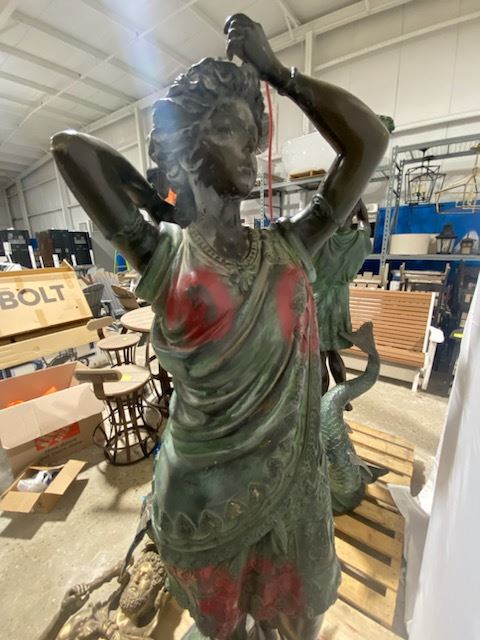 One Bronze Female Fountain Sculpture signed by Auguste Moreau. Item is very large and will require additional shipping costs depending on your location. Consignor purchased the home owned by the late Lionel Hastings and these were from his collection!