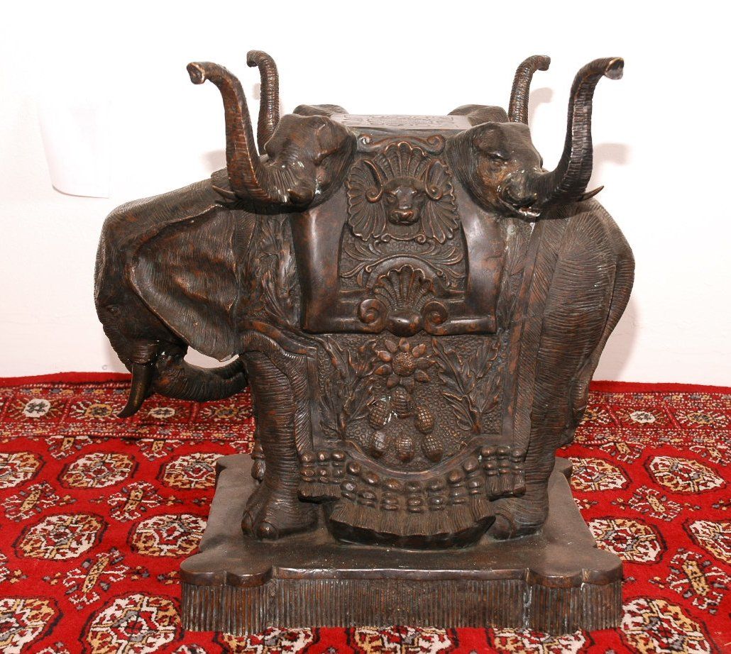 Bronze five head elephant table. Sold without glass. 20"H x 20"L x 13"D