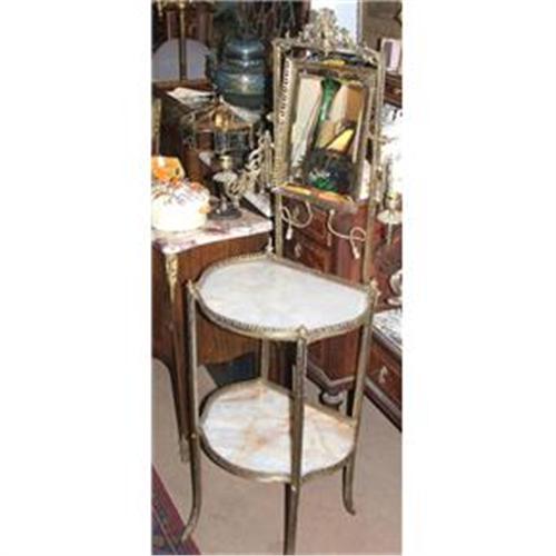 <table width="100%" border="0" cellspacing="0" cellpadding="4"><tr><td><em> </em></td></tr><tr> <td width="100%"> Fine piece, Excellent quality French bronze foundry with two white onix stands , both in very good conditions,and beveled crystal mirror It is a Louis XV revival with several Louis XVI ornament as usually done during the Napoleon III period close to 1880. </td></tr><tr> <td> </td></tr><tr> <td>Reference #: 1076</td></tr><tr><td>Condition:very good</td></tr><tr><td>Year:1880-1900</td></tr><tr><td>Country:France</td></tr><tr><td>Height:52</td></tr><tr><td>Width:17</td></tr><tr><td>Title:Bronze French Dressing mirror</td></tr><tr><td>Style:Louis XV revival</td></tr><tr><td>Materials:Bronze and Onix</td></tr><tr><td>Location:Overseas</td></tr></table>