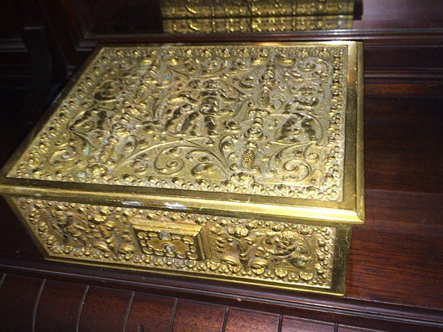 Bronze German Cigar Humidor possibly or jewelry vault. Has some unbelievable cherab figurines, all bronze, very very nice piece, made in Germany