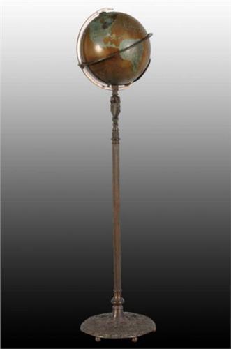 Description Circa 1915. Rare. Globe with patina world map on zodiac base. Decorative Lamp Condition (Excellent).