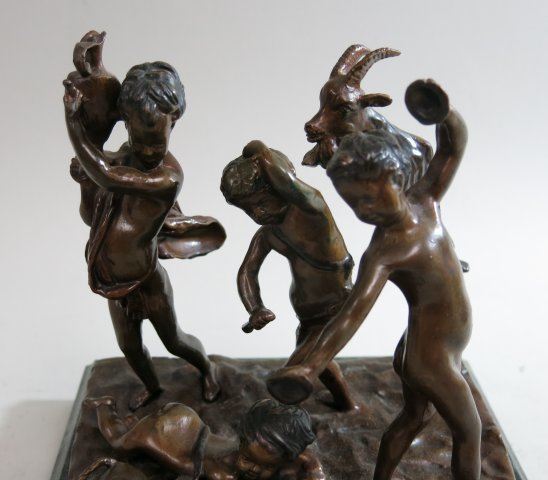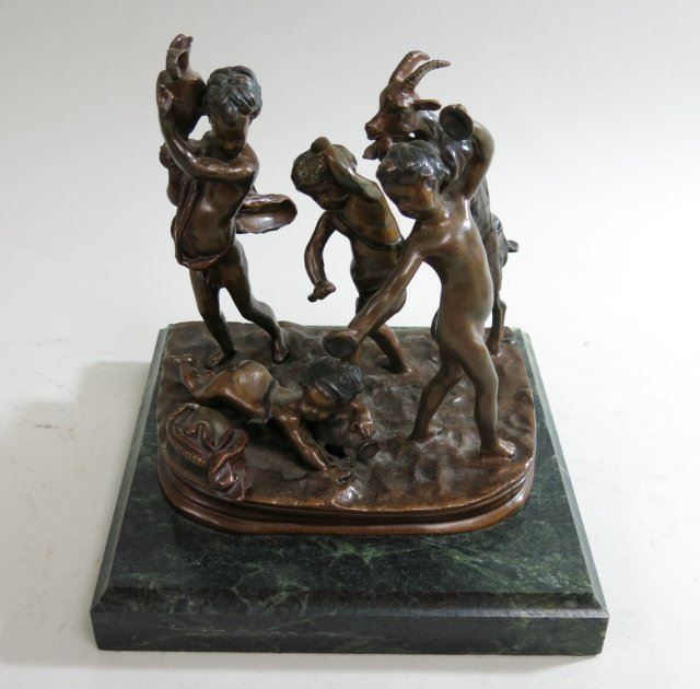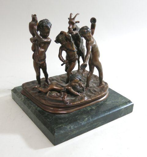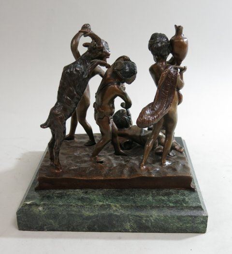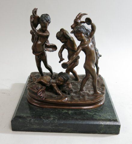 Depicting children & goat. Signed Clodion. Mounted on marble base. Approx. 8 1/2" H with base.