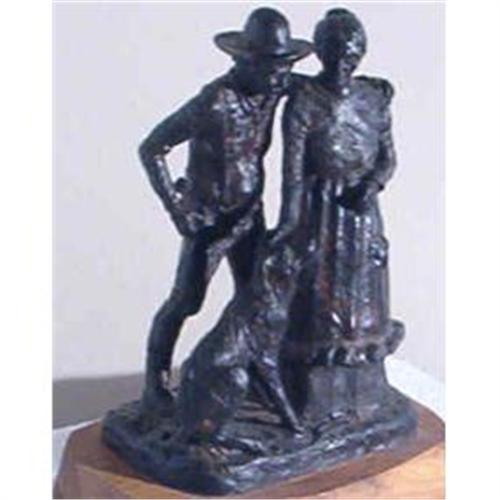 Number 7 of only 12!!! Carl J Smith is still alive. A wonderfully nostalgic grouping of a settler man, woman and dog.Base not included in measurements.
