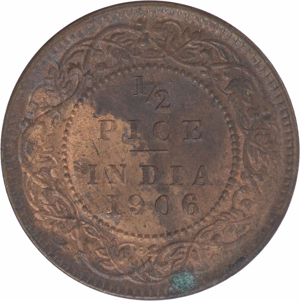 1906,King Edward VII,Bronze 1/2 Pice,Calcutta Mint,(PR # 740),UNC, Rare.