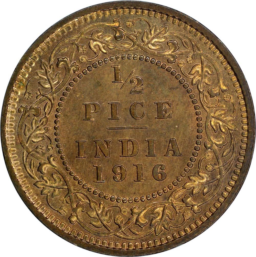 Bronze Half Pice of King George V of Calcutta Mint of 1916.