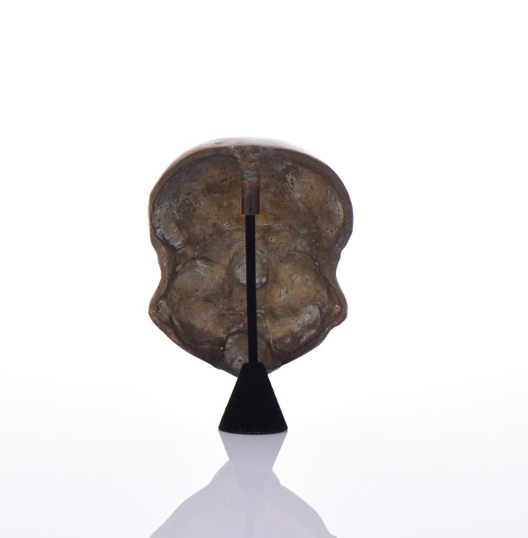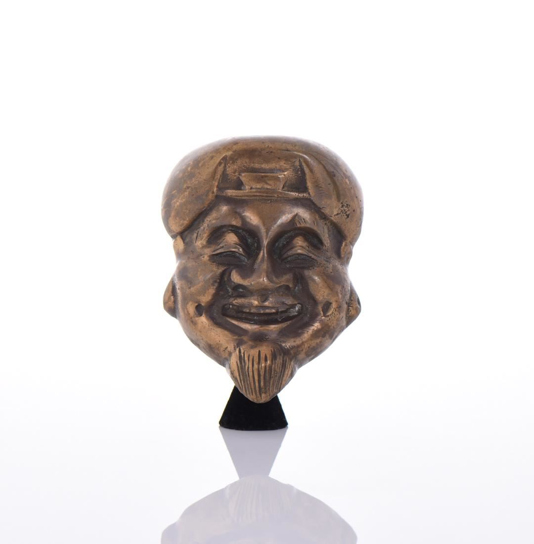 Bronze Happy Buddha Miniature Mask. Estimated more than 50 yrs old. The use of bronze dates from remote antiquity. This important metal is an alloy composed of copper and tin, in proportion which vary slightly, but may be normally considered as nine parts of copper to one of tin. The result is a metal of a rich golden brown color, capable of being worked by casting a process little applicable to its component parts, but peculiarly successful with bronze, the density and hardness of the metal allowing it to take any impression of a mold, however delicate. It is thus possible to create ornamental work of various kinds. The process of casting is known as cire perdue, and is the most primitive and most commonly employed through the centuries, having been described by the monk Theophilus, and also by Benvenuto Cellini. Briefly, it is as follows: a core, roughly representing the size and form of the object to be produced, is made of pounded brick, plaster or other similar substance and thoroughly dried. Upon this the artist overlays his wax, which he models to the degree required in his finished work. Passing from the core through the wax and projecting beyond are metal rods. The modelling being completed, the outer covering which will form the mold has to be applied this is a liquid formed of clay and plaster sufficiently thin to find its way into every detail of the wax model. Further coatings of liquid are applied, so that there is, when dry, a solid outer coating and a solid inner core held together by the metal rods, with the work of art modelled in wax between. Heat is applied and the wax melts and runs out, and the molten metal is poured in and occupies every detail which the wax had filled. When cool, the outer casing is carefully broken away, the core raked out as far as possible, the projecting rods are removed and the object modelled in wax appears in bronze. If further finish is required, it is obtained by tooling. (Wikipedia) Size and weight is provided in the last photo of this lot if not written within the lot description. All photos represent the lot condition and may contain unseen imperfections in addition to the information provided. All items are described to the best of our abilities. Please communicate all questions and concerns prior to bidding. Please read our terms and conditions for more details. Good luck bidding.