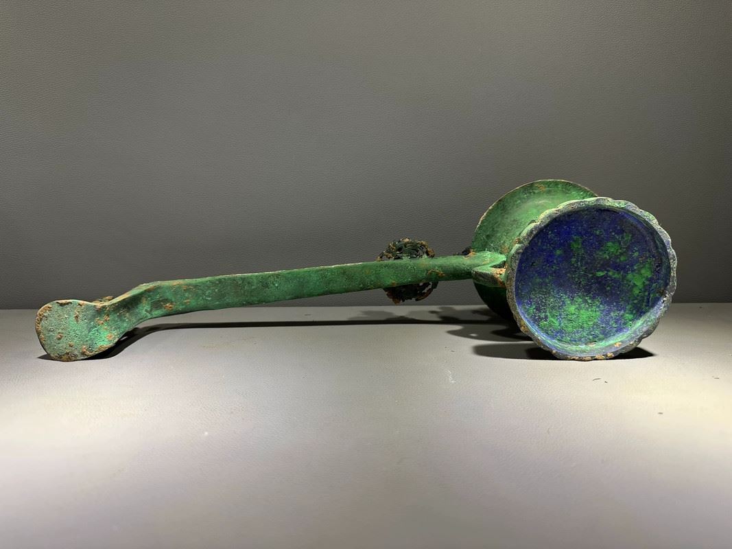 This bronze incense burner is a traditional ancient artifact with a simple yet elegant design, showcasing the exquisite craftsmanship of ancient bronze casting techniques. Incense burners like this one were typically used for incense or cooking, combining practicality with aesthetic appeal. The surface retains its bronze sheen, with traces of its historical use, reflecting its cultural significance and rich historical value.