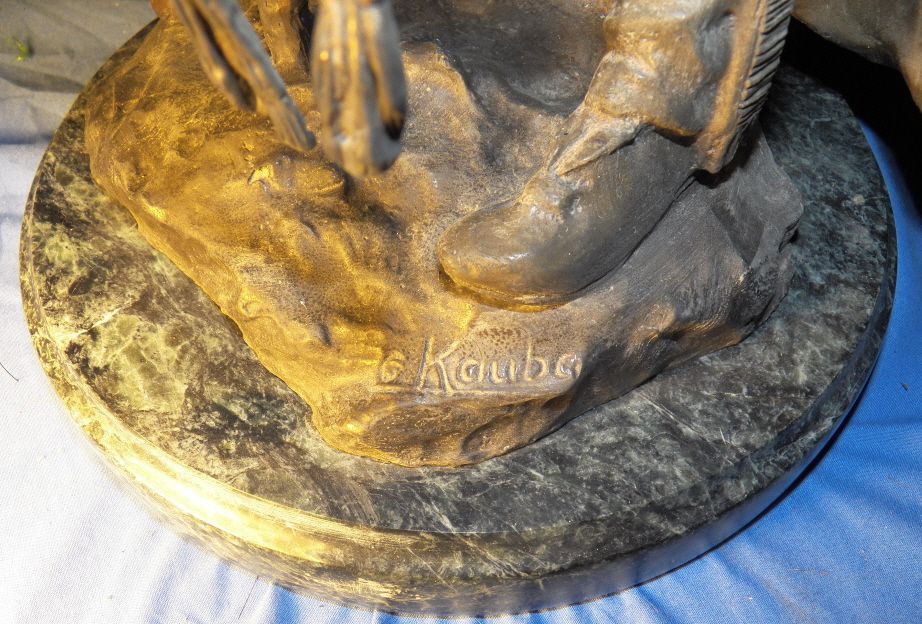 Awesome sculpture of Indian Chief on Marble base signed "Carl Kauba" (Austrian 1865-1922) very nice piece weights approx 60lbs and is approx overall 31" tall x 10" wide