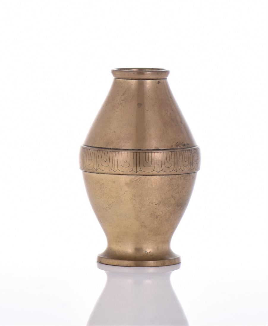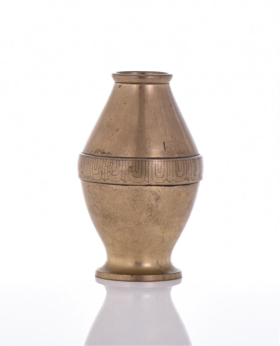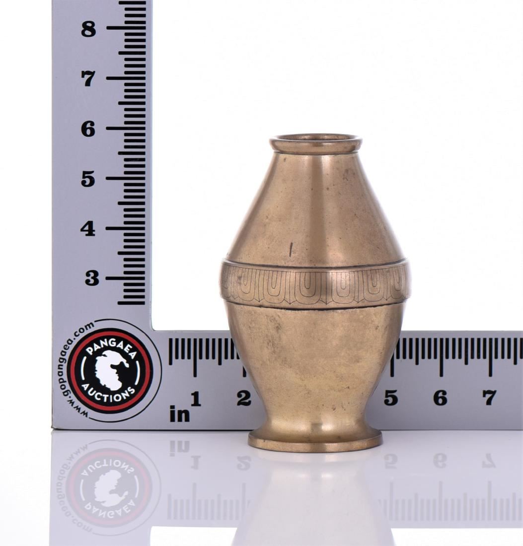 Bronze Inscribed Vessel. Estimated more than 100 yrs old. Art Deco is a style of visual arts, architecture and design that first appeared in France just before World War I. It became popular in the 1920s and 1930s, and influenced the design of buildings, furniture, jewelry, fashion, cars, movie theaters, trains, ocean liners, and everyday objects such as radios and vacuum cleaners. It combined modernist styles with fine craftsmanship and rich materials. During its heyday, Art Deco represented luxury, glamour, exuberance, and faith in social and technological progress. Art Deco was influenced by the bold geometric forms of Cubism the bright colors of Fauvism and of the Ballets Russes and the updated craftsmanship of the furniture of the eras of Louis Philippe and Louis XVI by the exotic styles of China and Japan, India, Persia, ancient Egypt and Maya art. It featured rare and expensive materials such as ebony and ivory and exquisite craftsmanship. Art Deco became one of the first truly international architectural styles, with examples found in European cities, the United States, Russia, Latin America, Africa and Asia. (Wikipedia) Size and weight is provided in the last photo of this lot if not written within the lot description. All photos represent the lot condition and may contain unseen imperfections in addition to the information provided. All items are described to the best of our abilities. Please communicate all questions and concerns prior to bidding. Please read our terms and conditions for more details. Good luck bidding.