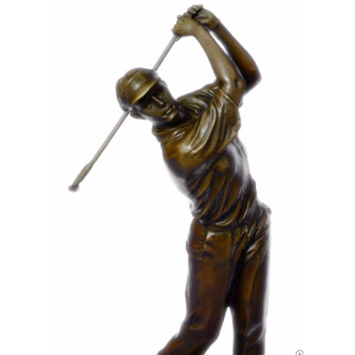 Male golfer, golfing sports trophy. Lost wax casting method bronze, with brown patina, mounted on marble plinth. 15" H X 5" W. 10 lbs.