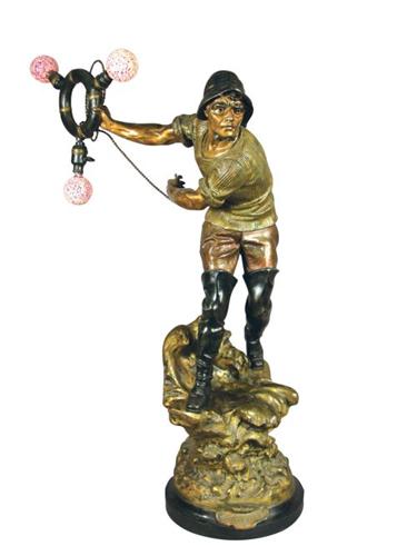 Mariner holding life ring bronze lamp. Sauveteur-xrop Banel fabricated in France. This is a fabulous piece that would adorn any room. 36 inches tall.