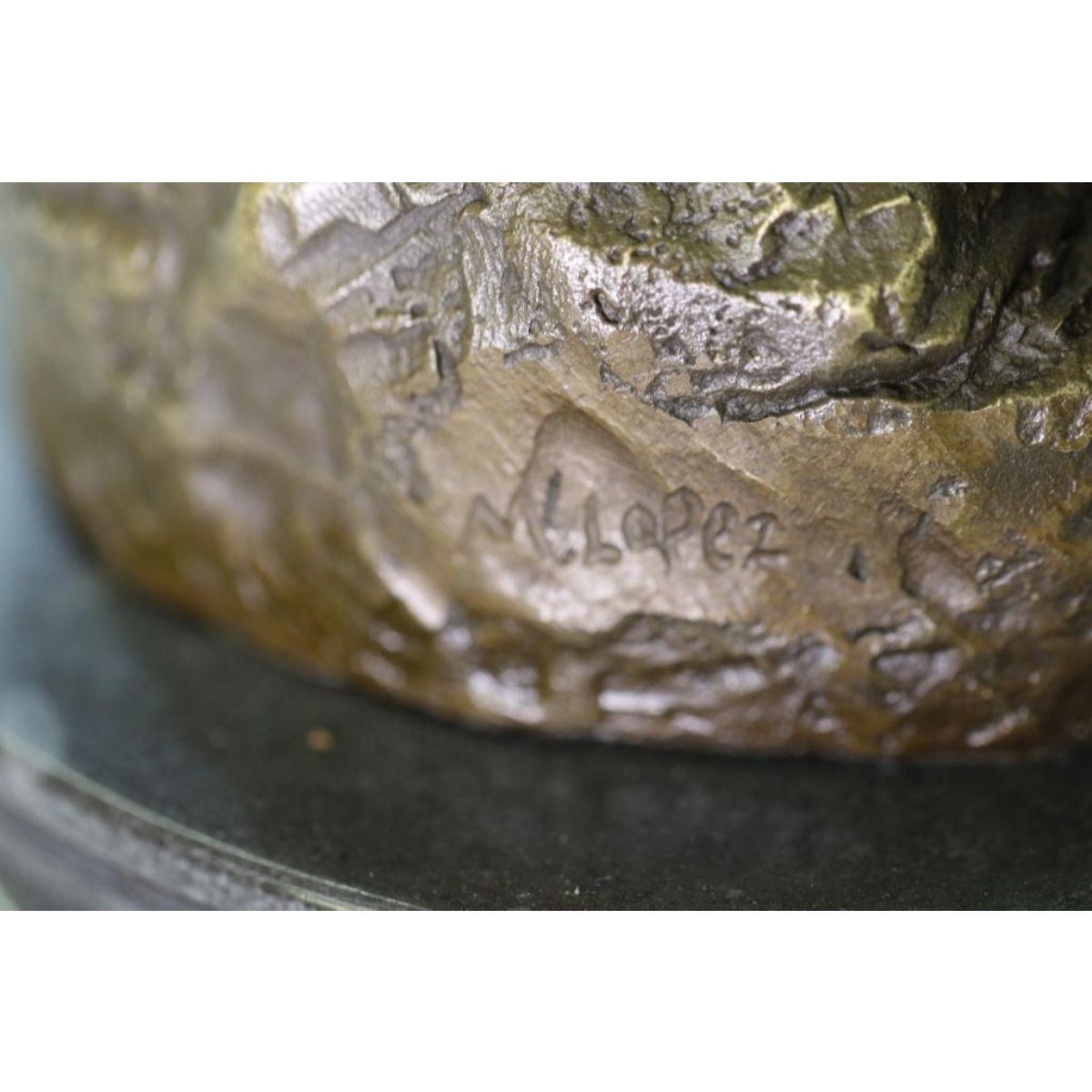 This sculpture is 100% hot cast bronze metal and was handmade by artists using the ancient lost wax casting process.  This sculpture contains no resins or cheap fillers. This sculpture is mounted on a real marble base. Condition: New Bronze Dimensions with Marble Base: Height 17" x Width 7.5" Marble Dimensions: 7.5" Height without base: 16" Approximate Weight : 17 LBS Signature: M. Lopez Original or Reproduction: Original