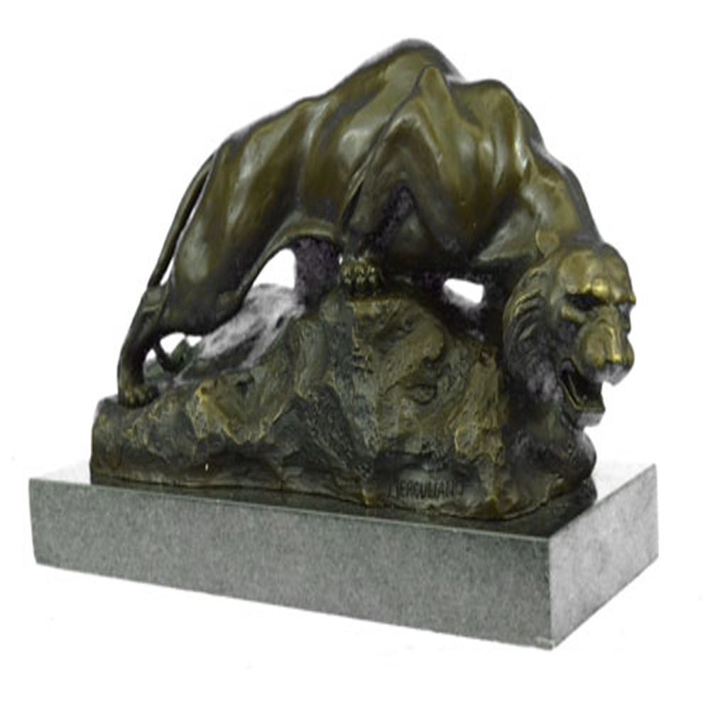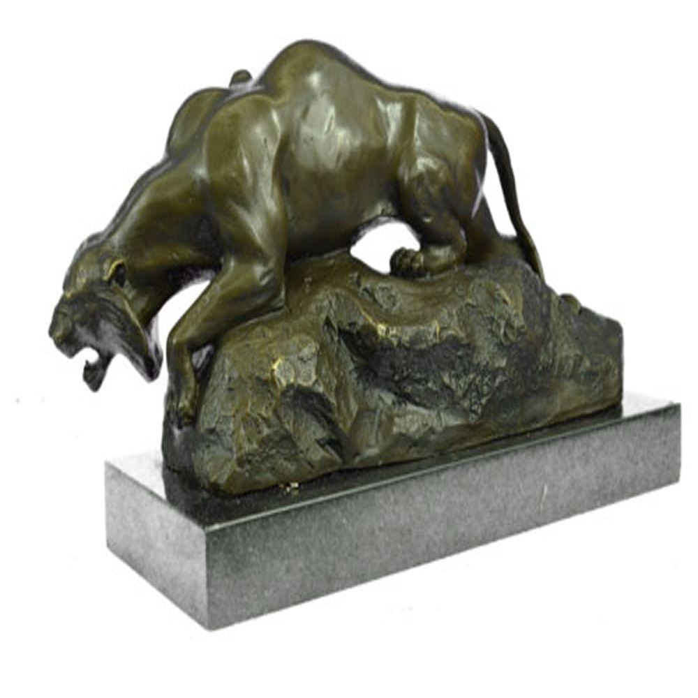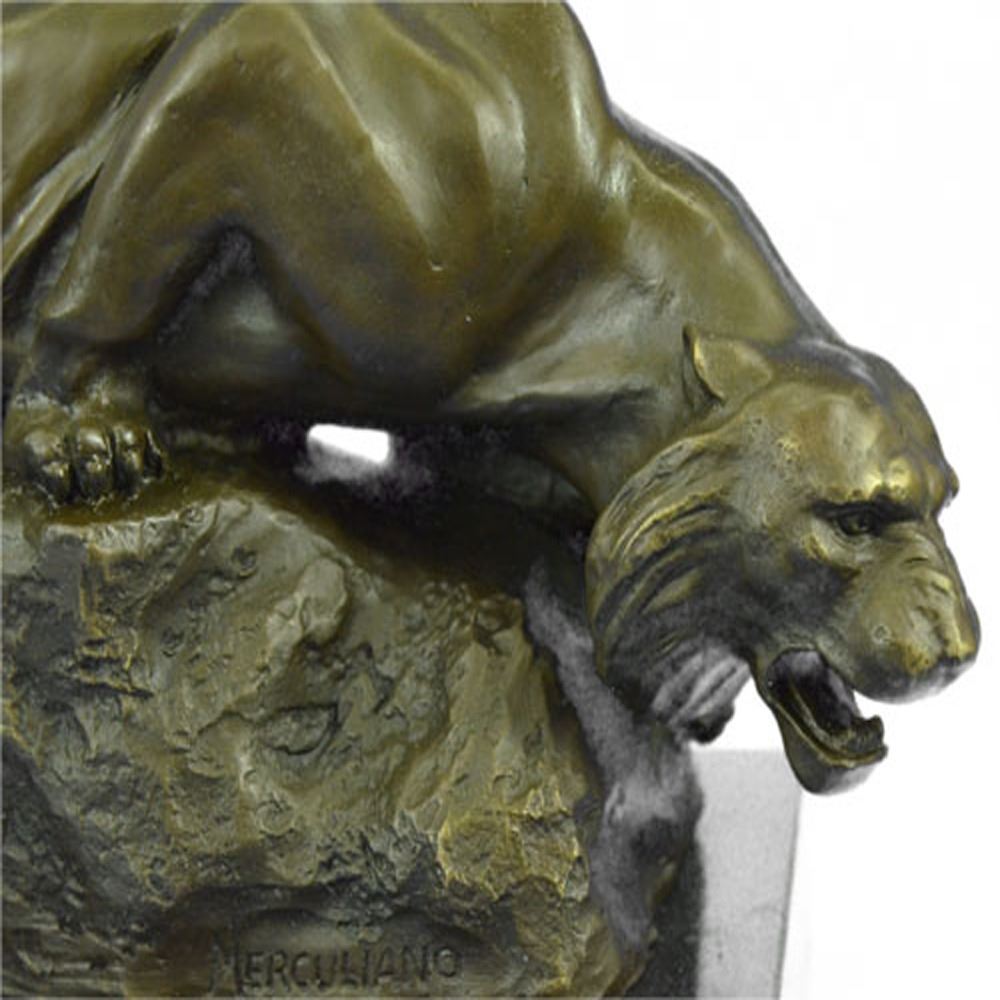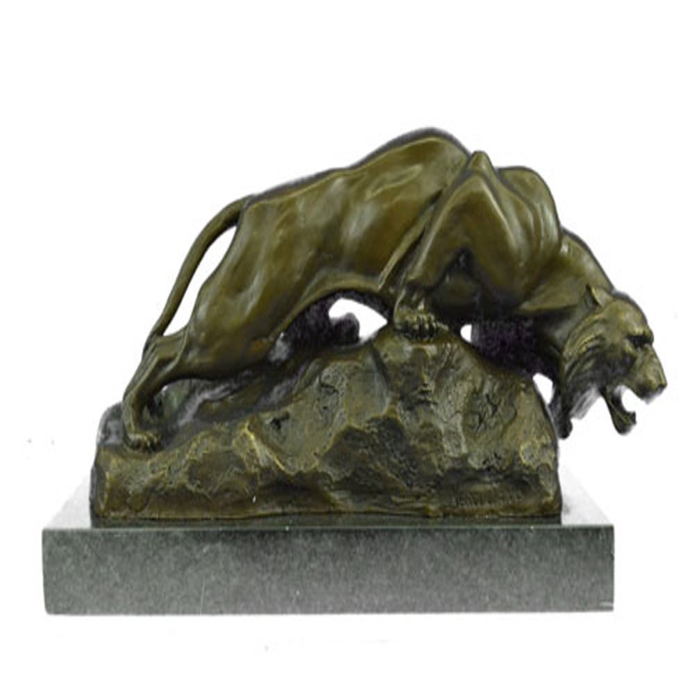Capturing both the raw vitality and the sculpted form of one of nature most magnificent creatures, the artist has rendered the spirit of a leopard relishing its coveted freedom. Its fluidity of motion is captured in a symphony of muscles and will make you proud to add this bronze finished designer bronze work to your own gallery. This piece is a truly artistic and lively representation of breed. Made with Hot cast bronze and patina by hand, the definition and the intricate details are simply breathtaking. Bronze Dimensions with Marble Base: Height 16 X length 7 inches. Weight: 10 LBS.