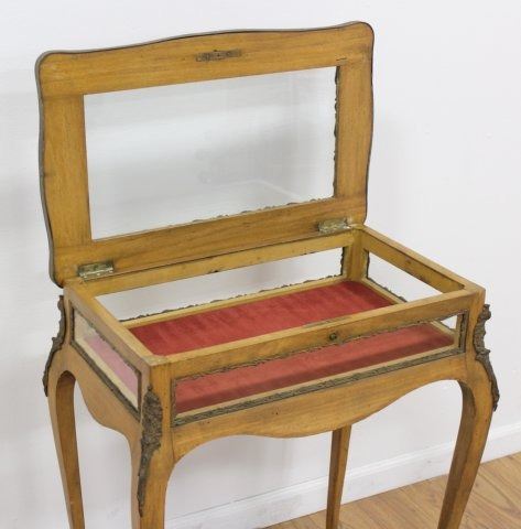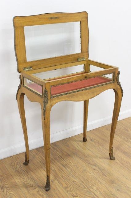 Lift-top. 1920s, refinished in the 1950s. Red velvet interior. Approx. 34 1/2" H x 24 1/2" W x 15 1/2" D. (6096)