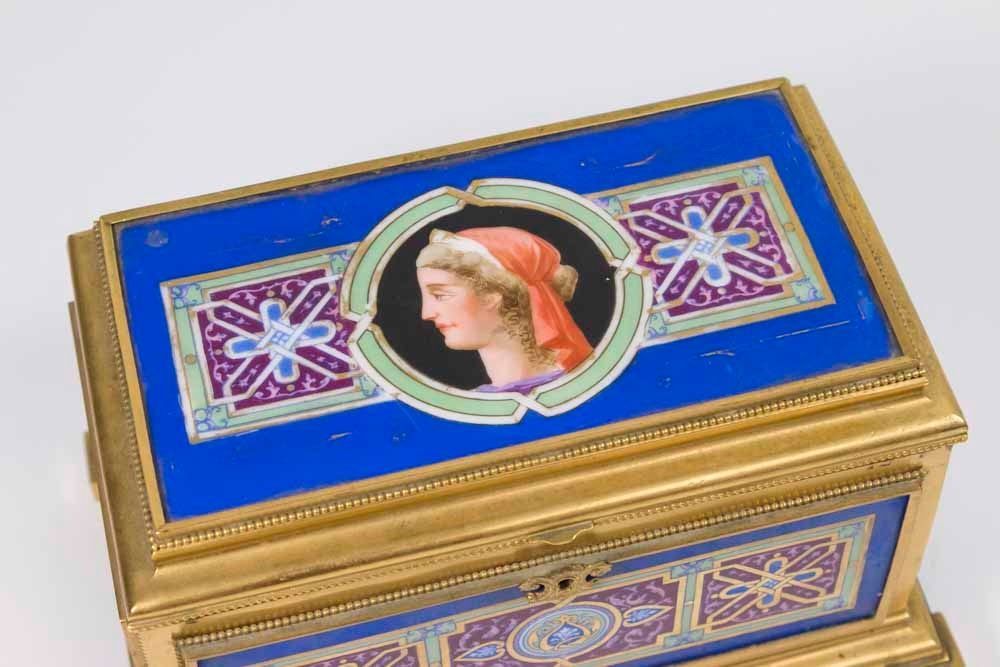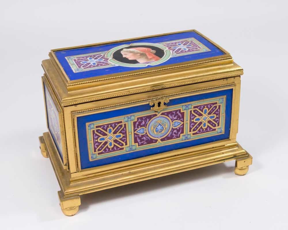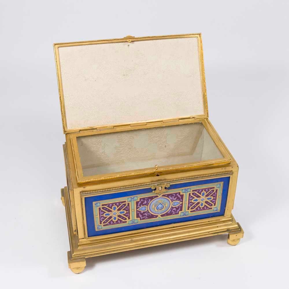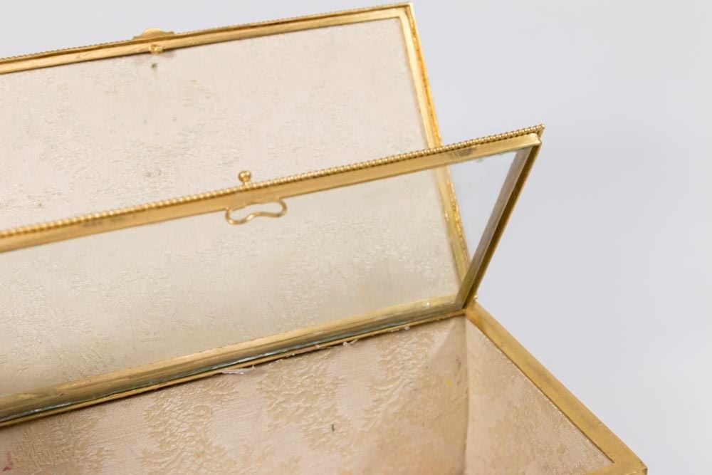 With inner glass lid. Approx. 5 7/8" x 8 5/8" x 5 1/2". (6158)