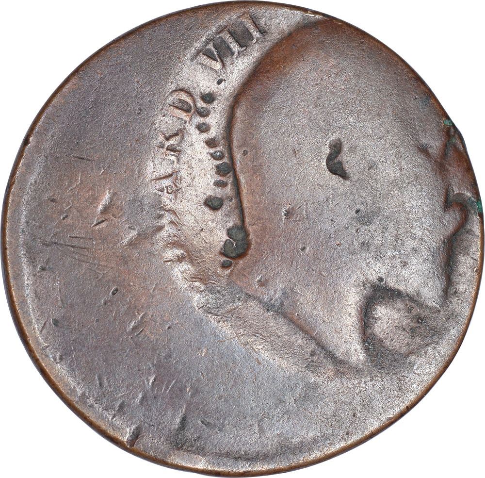 1906, King Edward VII, Copper1/4 Anna, 40% off center-struck on both sides, about extremely fine, Scarce.