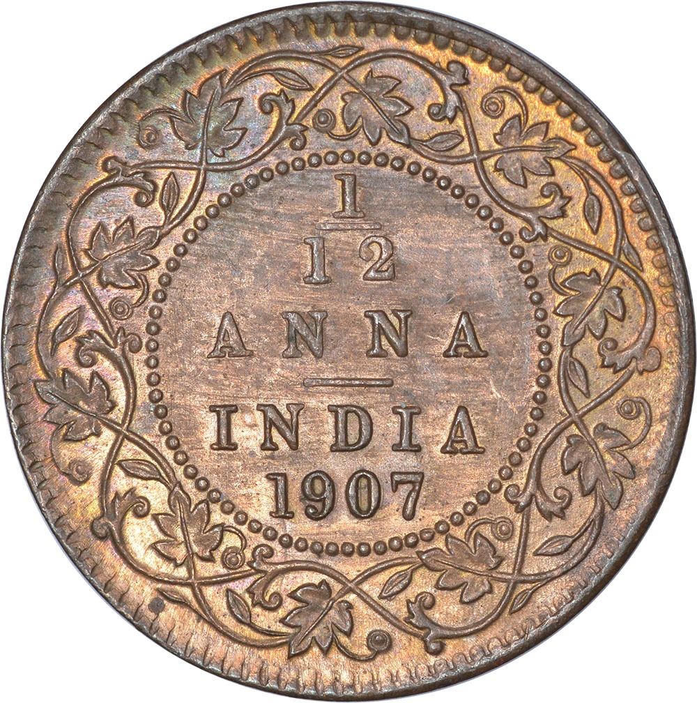 Bronze One Twelfth Anna Coin of King Edward VII of Calcutta Mint of 1907.