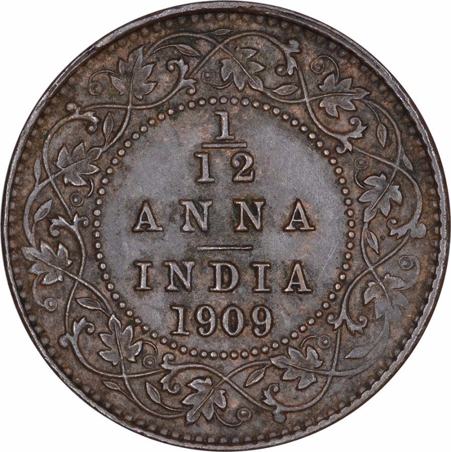 Bronze One Twelfth Anna Coin of King Edward VII of Calcutta Mint of 1909.