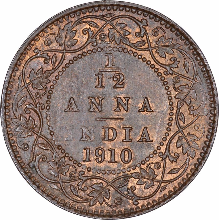 Bronze One Twelfth Anna Coin of King Edward VII of Calcutta Mint of 1910.
