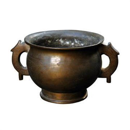<tr><td>Title:Bronze Oriental 2-Handled Pot</td></tr>