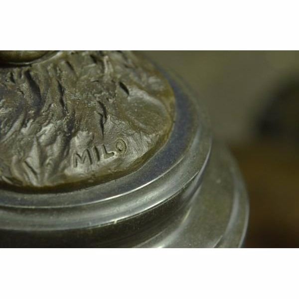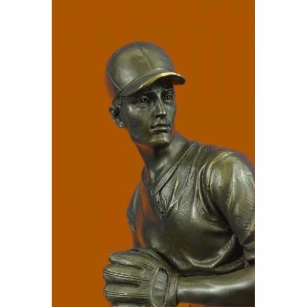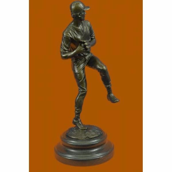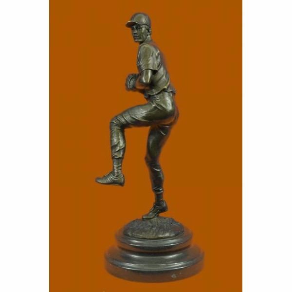 Baseball player stands ready for action. He would brighten a park, a playground or your own backyard! We have cast this using high quality American bronze. It is intended for indoor and outdoor display and will last for hundreds of years with little maintenance. Each piece is made from a 100% Real bronze and is signed by artist Milo. Stunning detail captures the true essence of the art of ancient hula movements. Accented with color and intricate detailing. Truly an heirloom piece that can be handed down from generation to generation. Condition : This sculpture is in perfect condition. Bronze Dimensions :Height 13.5" x Width 5" Weight :8 LBS Inventory : 45EP7664754