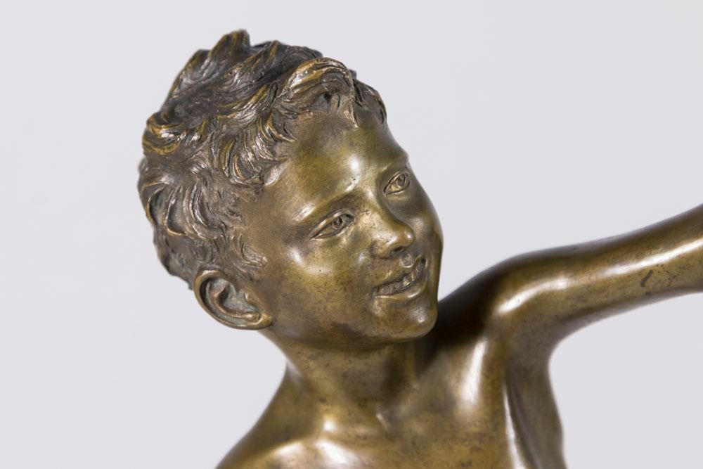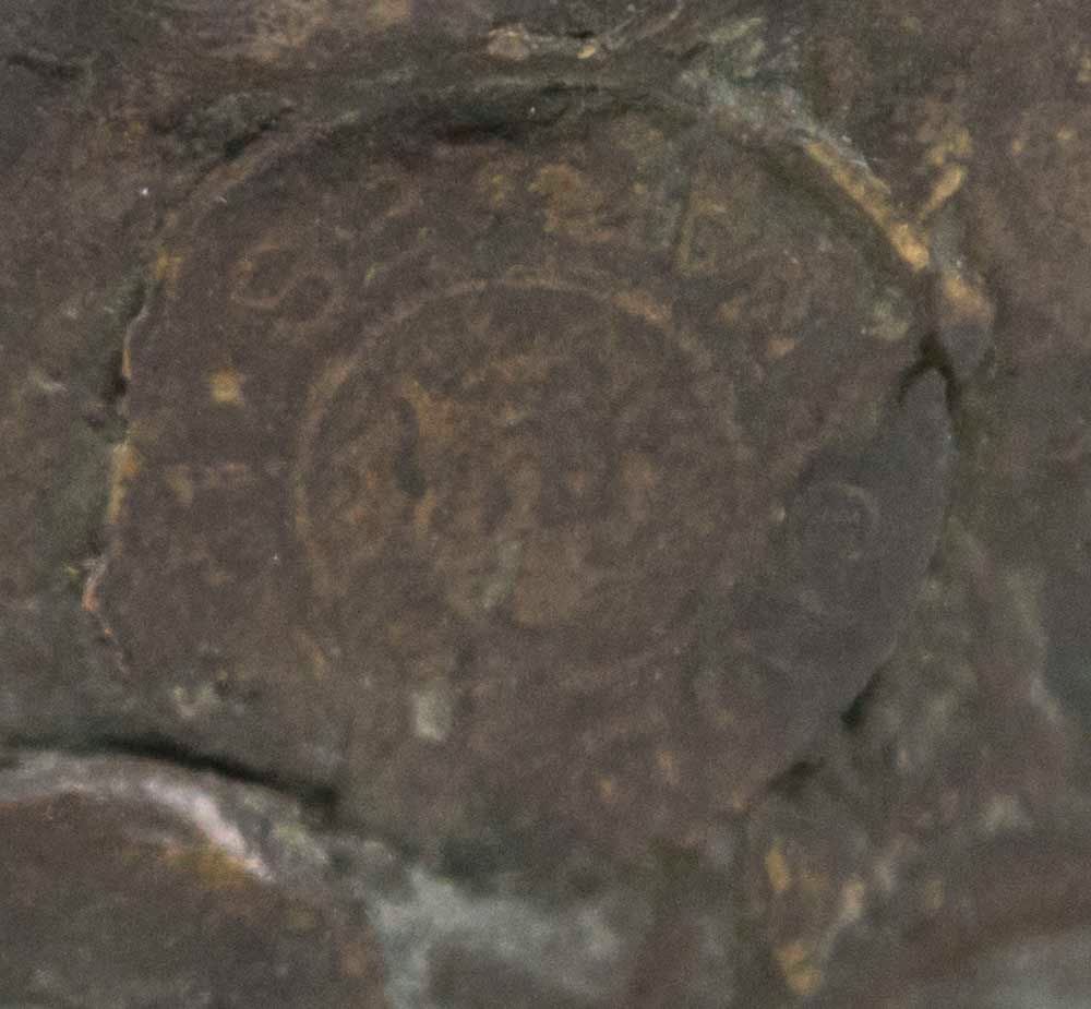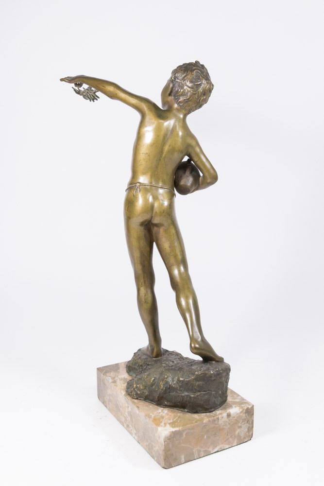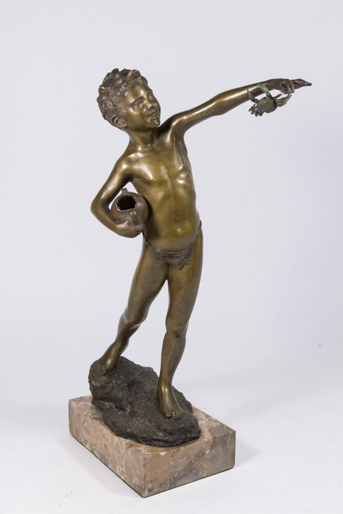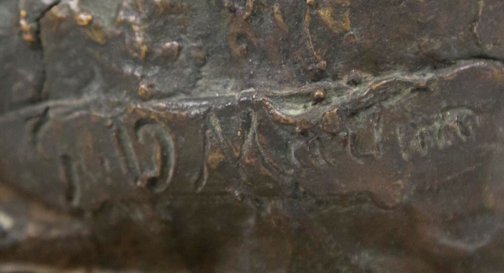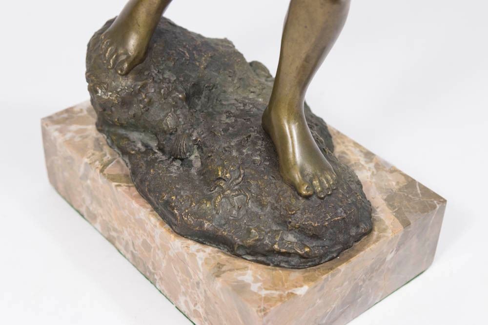 On marble base. Stamped on rock in back. Signed S.D. Maum. Approx. 17" H.