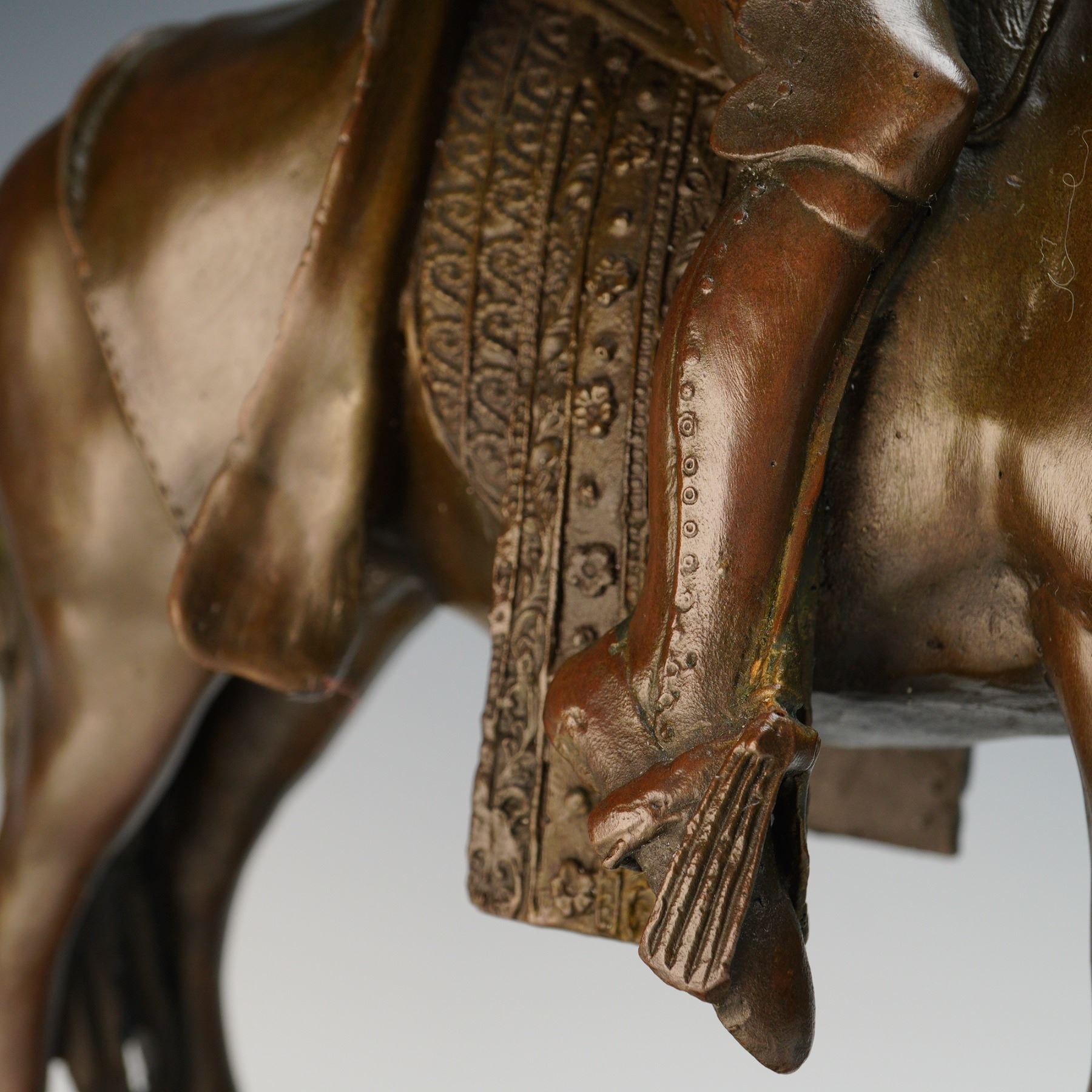 Bronze Sculpture Knight on Horseback, Signed