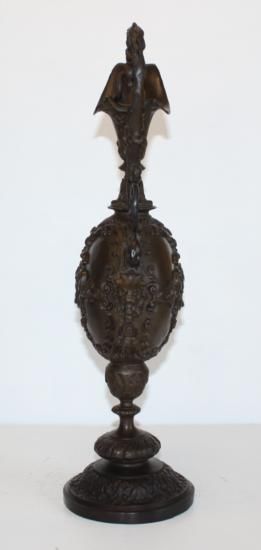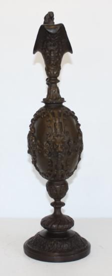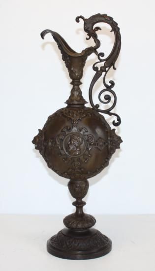 Bronze Ornate Urn, Bronze Sculpture, After Chiparus, 20 "Hx 8"W x 6"D 15 lbs This bronze sculpture was produced using the "Lost Wax" casting method. The"Lost Wax" Cast method is the most precise metal casting technique in existence, ensuring exquisite detail of the original host model which is usually sculpted in clay or wax. This "Lost Wax" casting method is an extremely labor intensive and expensive process, but the end results produce a Heirloom Quality Masterpiece!