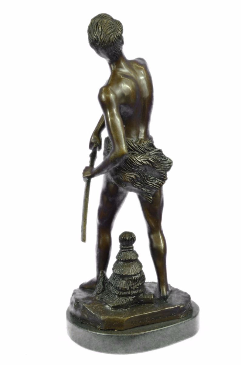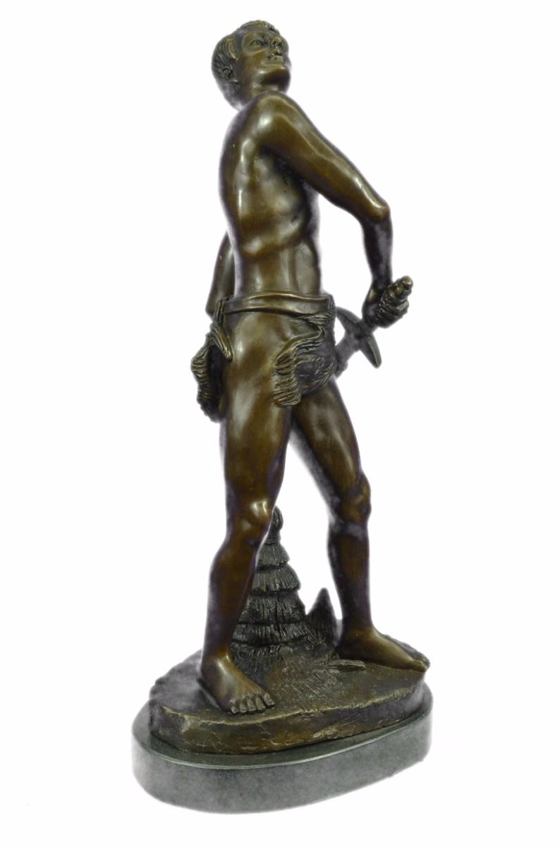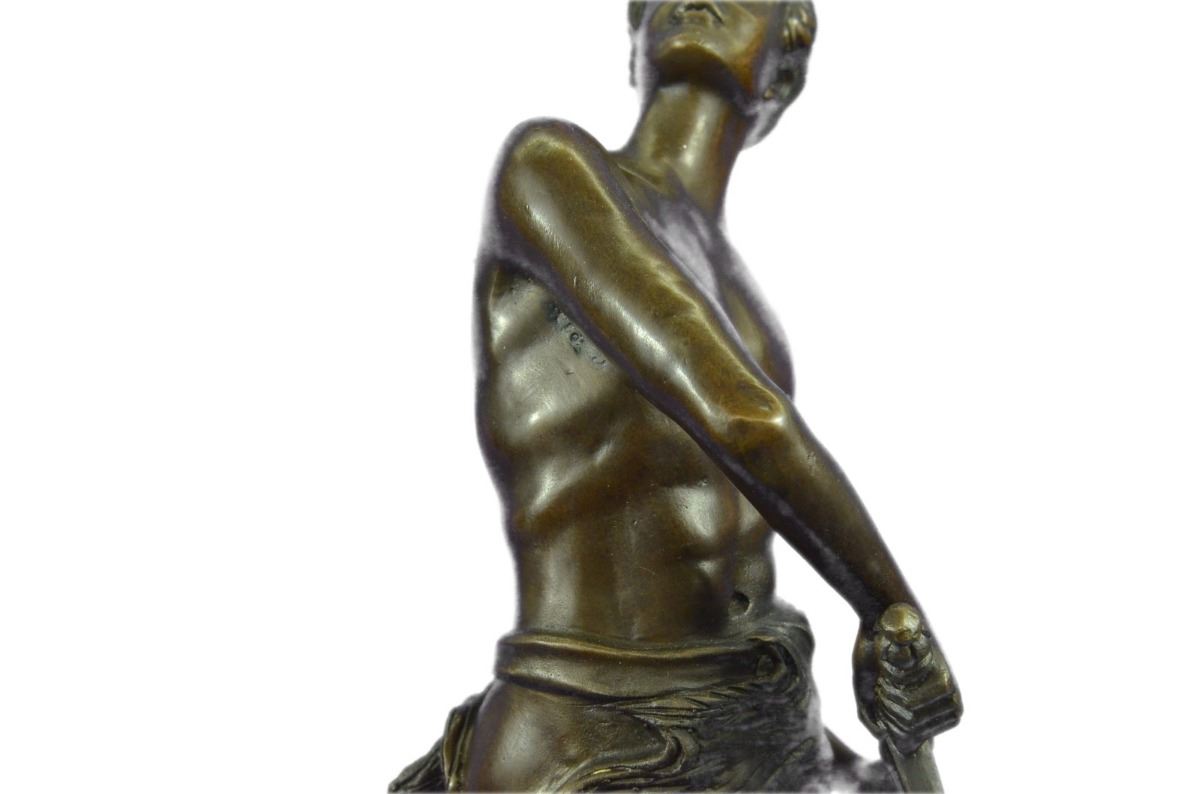 Fine 100% Pure Bronze Warrior With Sword By Adrien Gaudez (1845 - 1902) He Was A French Sculptor Of The 19Th Century And It Is Titled "Defense Du Foyer" The Male Figure Is Nude Except For An Animal Skin Covering. The Sculpture Was Molded By Using The Lost-Wax Casting Method And Finished With Brown Patina Tarnish Allowing Intricate Work To Come Through The Precious Metal. This Is An Exquisite Three-Dimensional Work Of Art For Anyone Who Is Gaudez Enthusiast. Bronze Dimensions With Marble Base: Height 18 X Width 10 inches. Weight: 16 Lbs. This Is Not An Original Of His Work But A Recent Reproduction.
