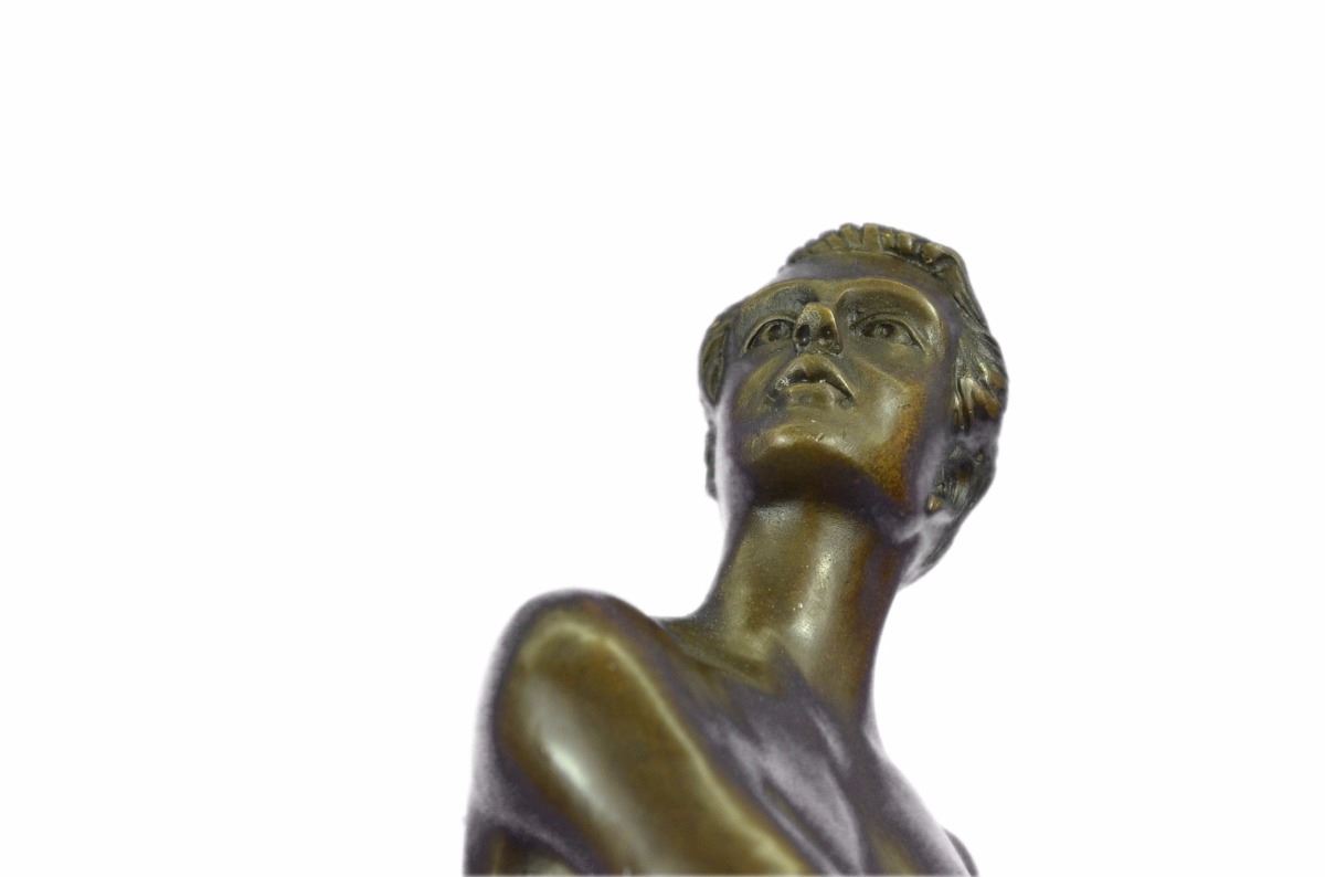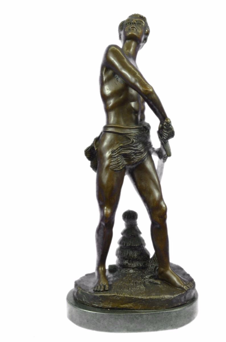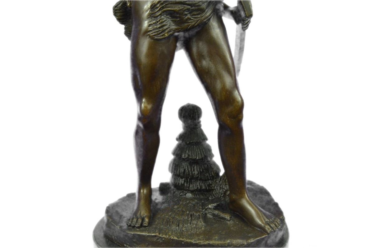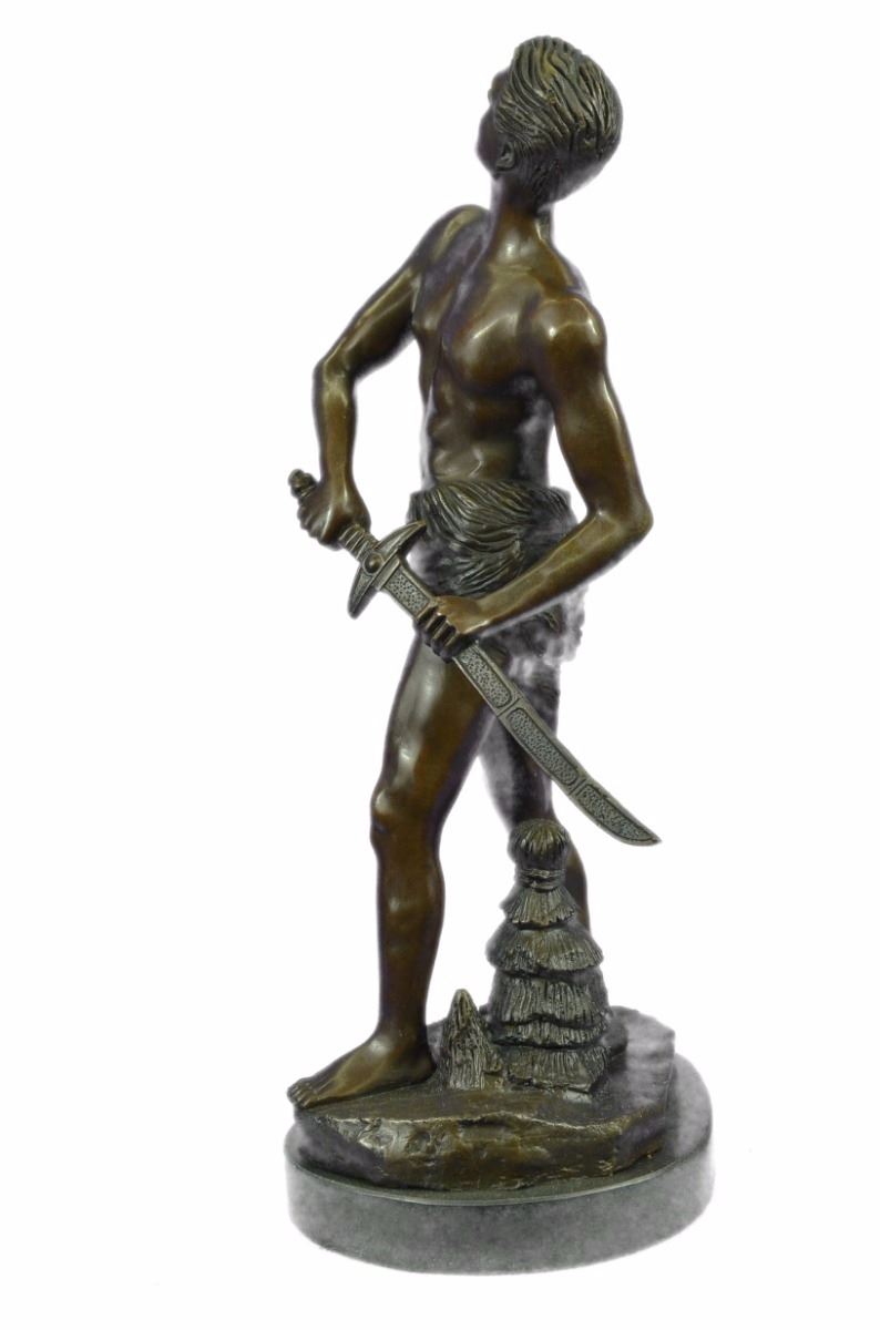 Fine 100% Pure Bronze Warrior With Sword By Adrien Gaudez (1845 - 1902) He Was A French Sculptor Of The 19Th Century And It Is Titled "Defense Du Foyer" The Male Figure Is Nude Except For An Animal Skin Covering. The Sculpture Was Molded By Using The Lost-Wax Casting Method And Finished With Brown Patina Tarnish Allowing Intricate Work To Come Through The Precious Metal. This Is An Exquisite Three-Dimensional Work Of Art For Anyone Who Is Gaudez Enthusiast. Bronze Dimensions With Marble Base: Height 18 X Width 10 inches. Weight: 16 Lbs. This Is Not An Original Of His Work But A Recent Reproduction.
