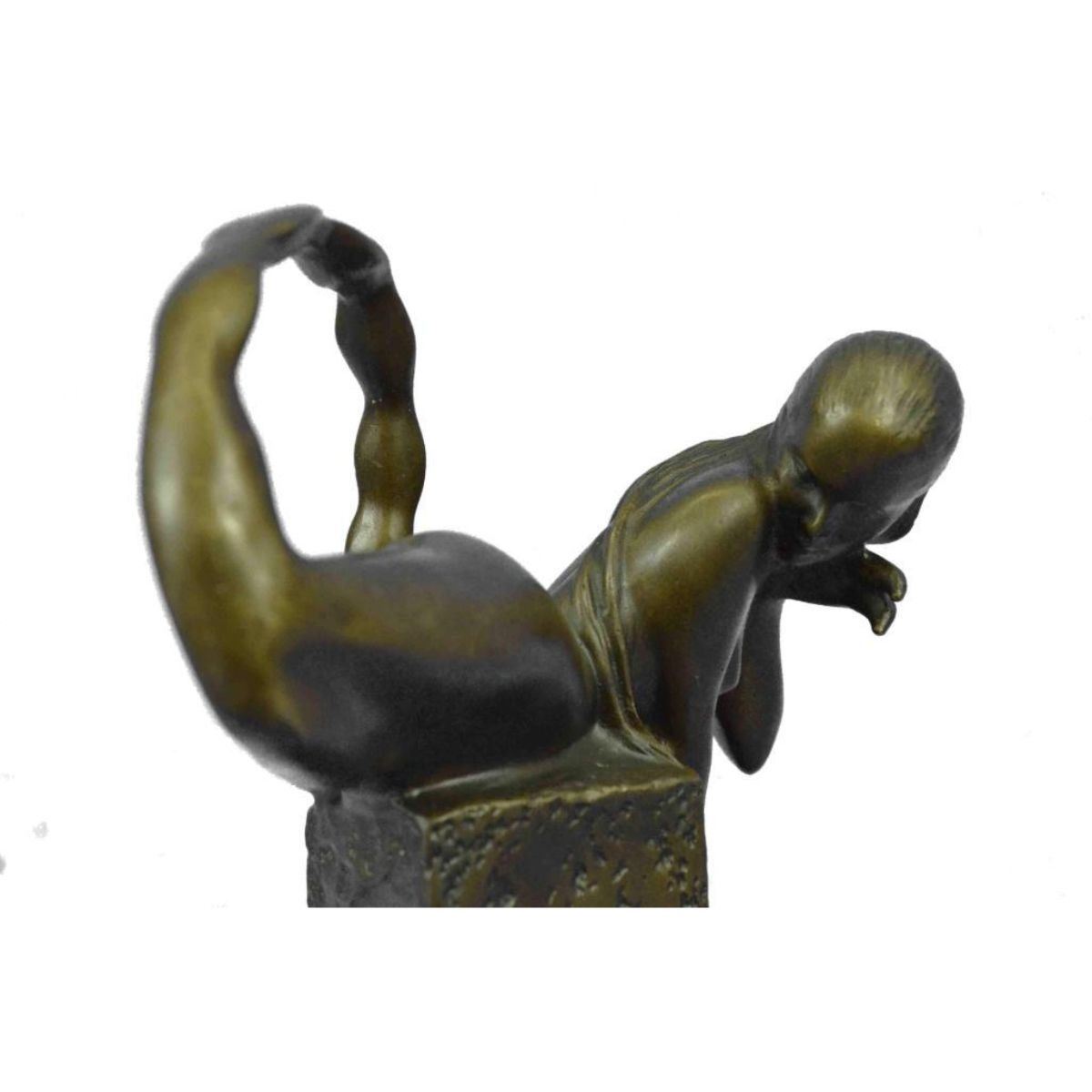 This sculpture is 100% hot cast bronze metal and was handmade by artists using the ancient lost wax casting process.  This sculpture contains no resins or cheap fillers. It is mounted on a real marble base. Bronze Dimensions with Marble Base: Height 9" x Width 7" Marble Dimensions: 5" x 4" Height without Base: 8" Approximate Weight : 6 LBS Signature: Jean Patoue Original or Reproduction: Original