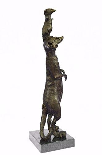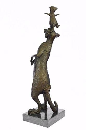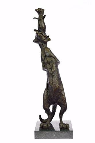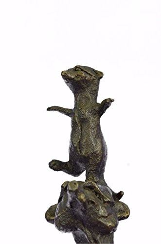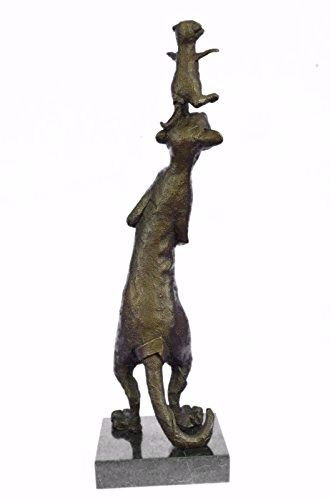 Well Modeled Genuine Hot Cast Large Bronze Sculpture Depicting A Meerkat Stood With A Baby Meerkat Balancing On His Head. The Sculpture Was Cast Using The Early Method Of Lost-Wax Casting And Stained With A Brown Patina Finish For Preservation. It Is Mounted Upon A Black Marble Base. Please Note: This is a reproduction bronze sculpture from the original molded and signed. This featured bronze sculpture is a recast after the original, and has been done recently. This 100% bronze sculpture is an abstract piece certain to be a conversation piece.Please Note: This is a reproduction bronze sculpture from the original molded and signed. This featured bronze sculpture is a recast after the original, and has been done recently. This 100% bronze sculpture is an abstract piece certain to be a conversation piece.