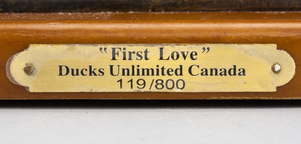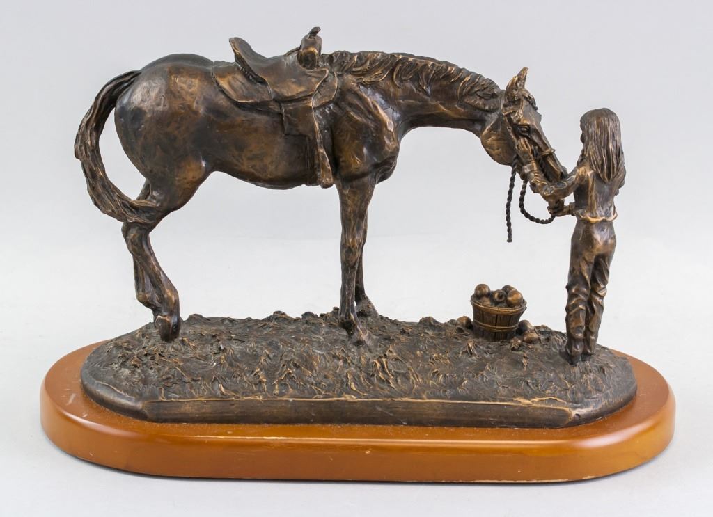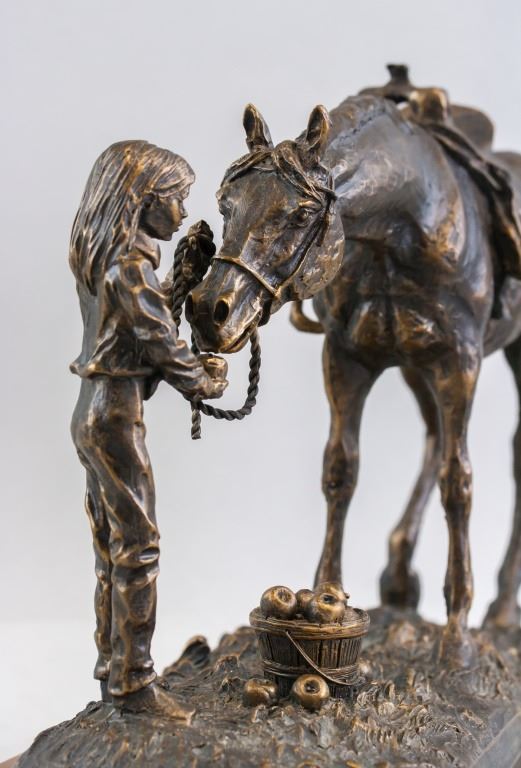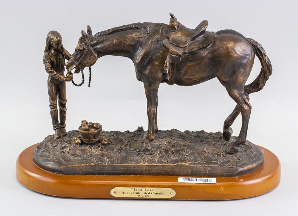Bronze on wooden base. "First Love' Ducks Unlimited Canada 119/800 Girl with Horse