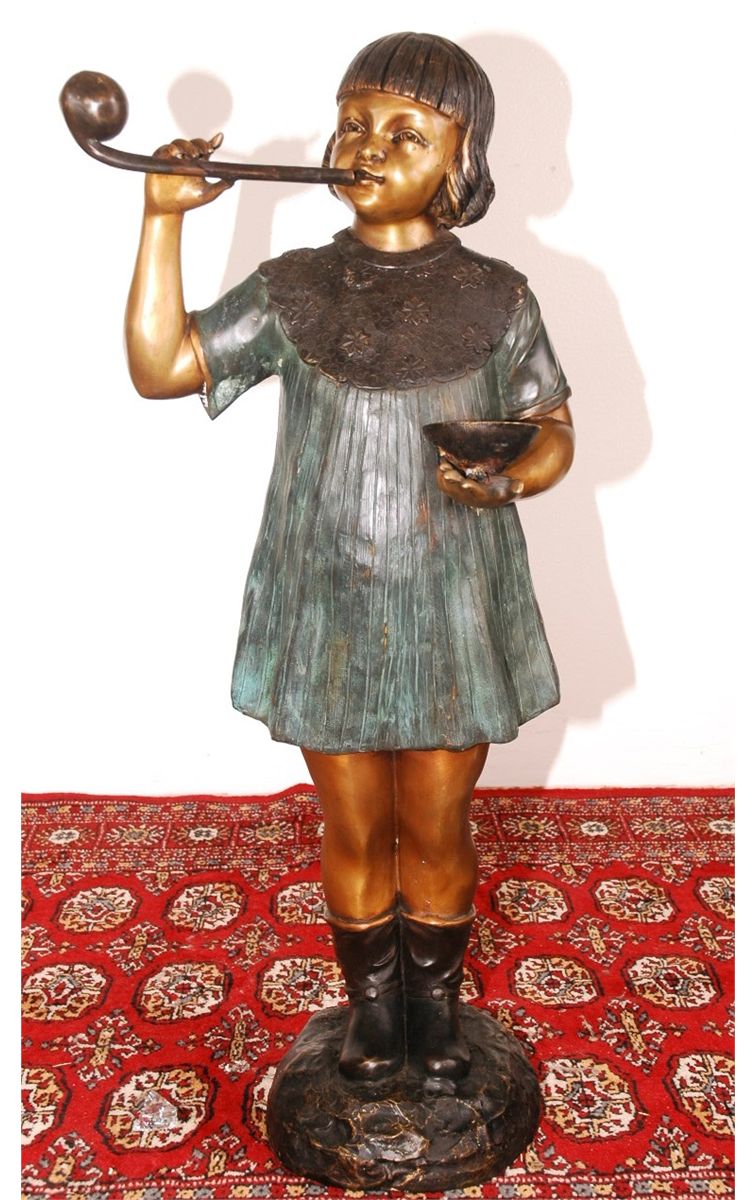 Bronze Statue of a Girl Blowing Bubbles, can also be used as a fountain 34"h x 13"