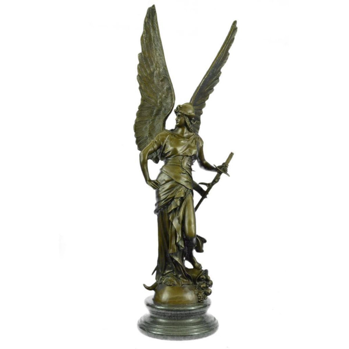 This sculpture is 100% hot cast bronze metal and was handmade by artists using the ancient lost wax casting process.  This sculpture contains no resins or cheap fillers. This sculpture is mounted on a real marble base. Condition: New Bronze Dimensions with Marble Base: Height 37" x Width 13" Marble Dimensions: 13" Height without Base: 31" Weight : 57 LBS Signature: Dalou