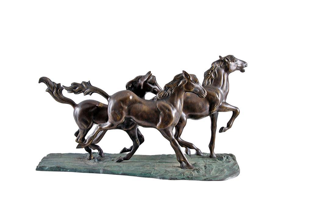 Bronze Statue of Three Running Horses Measures 35"Lx21H", unsigned.Measures 35"Lx21H", unsigned.