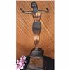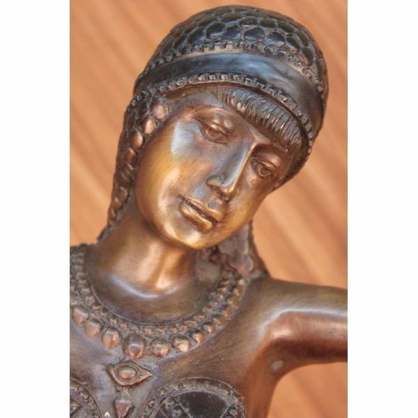 You Are Viewing A Gorgeous Bronze Casting Statue By Dimitri Chiparus. Chiparus Was One Of The Leading Artists Of The Art Deco Movement Working In France. This Beautiful Dancer Adopts A Wonderful Exotic Pose That Allows Her Dress To Flow Out Into A Captivating Semi Fan Shape. Ease And Fierce Composure Emanate From This Art Deco Sculpture. It'S A Wonderfully Designed And Executed Work Of Art, From The Delicately Poised Stance Of The Woman In A Gesture With One Leg Raised, To The Embellished Details Of Her Outfit. Her Beautifully Sculpted Garment Flows Out In An Interesting Pattern That Is Complemented By A Form Fitting Headpiece. Size: 36X14 inches. Weight: 40 lbs.