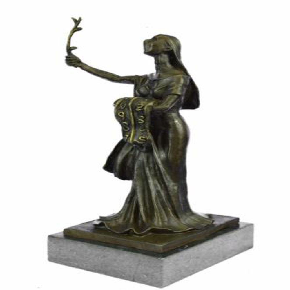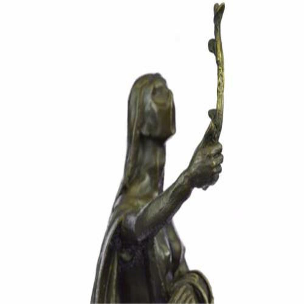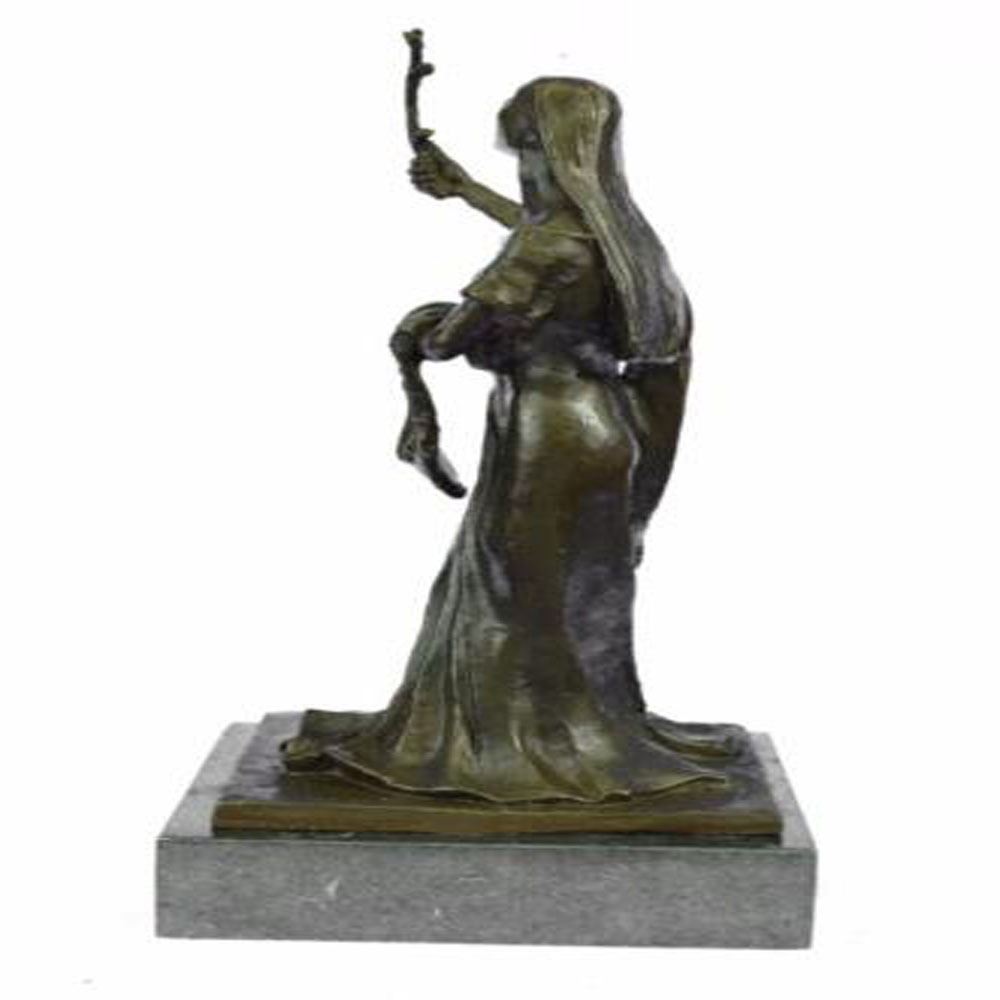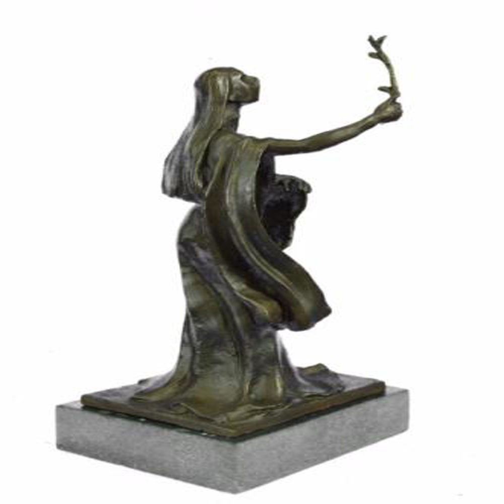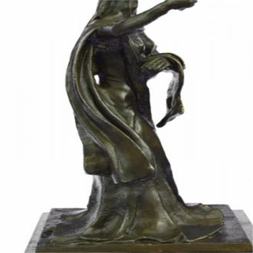 Woman of Time to be a messenger that time can be stretched or prolonged if used wisely and to celebrate the essence of time. This Bronze Sculpture was cast using the Lost Wax Method ensuring quality of detail. This Bronze Sculpture has a special hand painted with brown color patina and Mounted upon a marble base. Bronze Dimensions with Marble Base: Height 13 X Width 7 inches. Weight: 10 LBS.