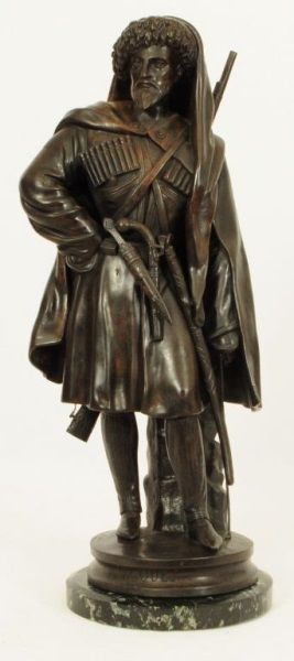 Bronze is on marble base, 22" tall.