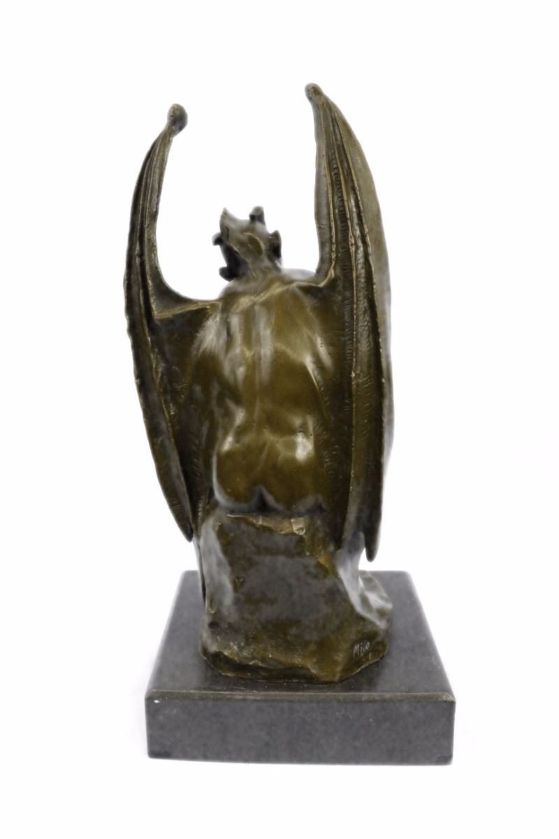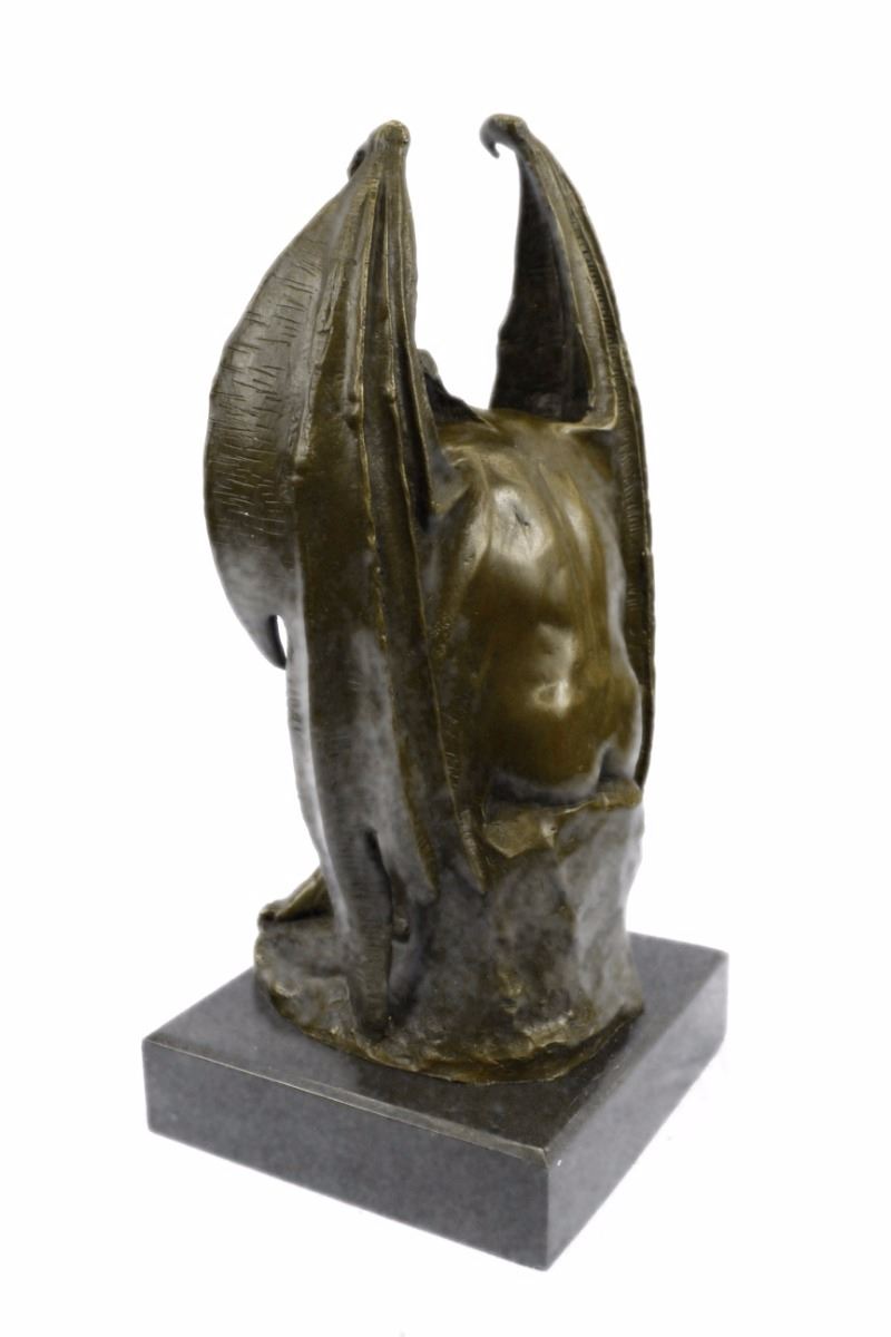 He Wraps Himself In His Wings And Holds Onto A Crucifix While Sitting And Thinking About His Presence In The World. This Gargoyle Devil Has The Body Of A Man But The Fingers And Toes Of A Gargoyle. He Has Horns That Grow Out Of His Head With A Mohawk Growing Down The Middle And His Facial Features Are Very Demonic, Like The Devil. His Wings Are Not Like An Angels But The Opposite They Are Similar To A Bats Wing And Have A Pointy Claw At The Top Of Each Wing. This Gargoyle Sits And Thinks About His Life And Questions Himself And Everything That He Has Stood For. Good Can Conquer Evil; It Just Has To Break Through. Bronze Dimensions With Marble Base: Height 15 X Width 7 inches. Weight: 15 Lbs.