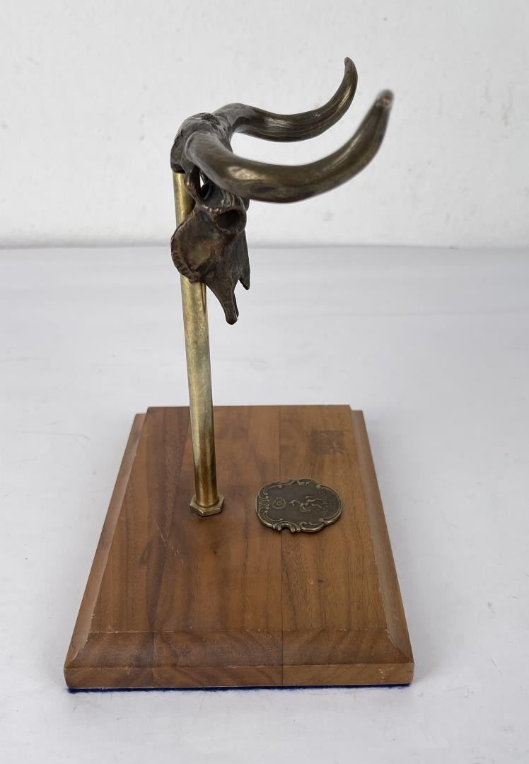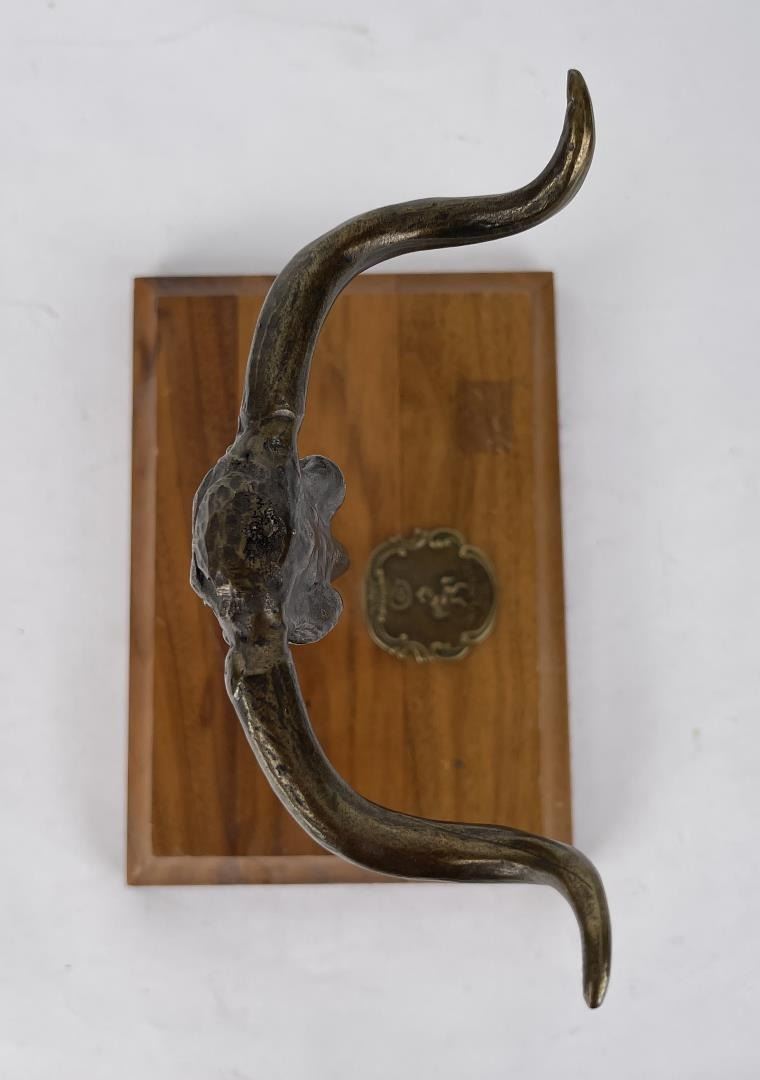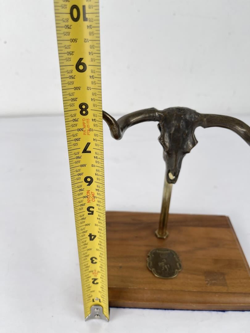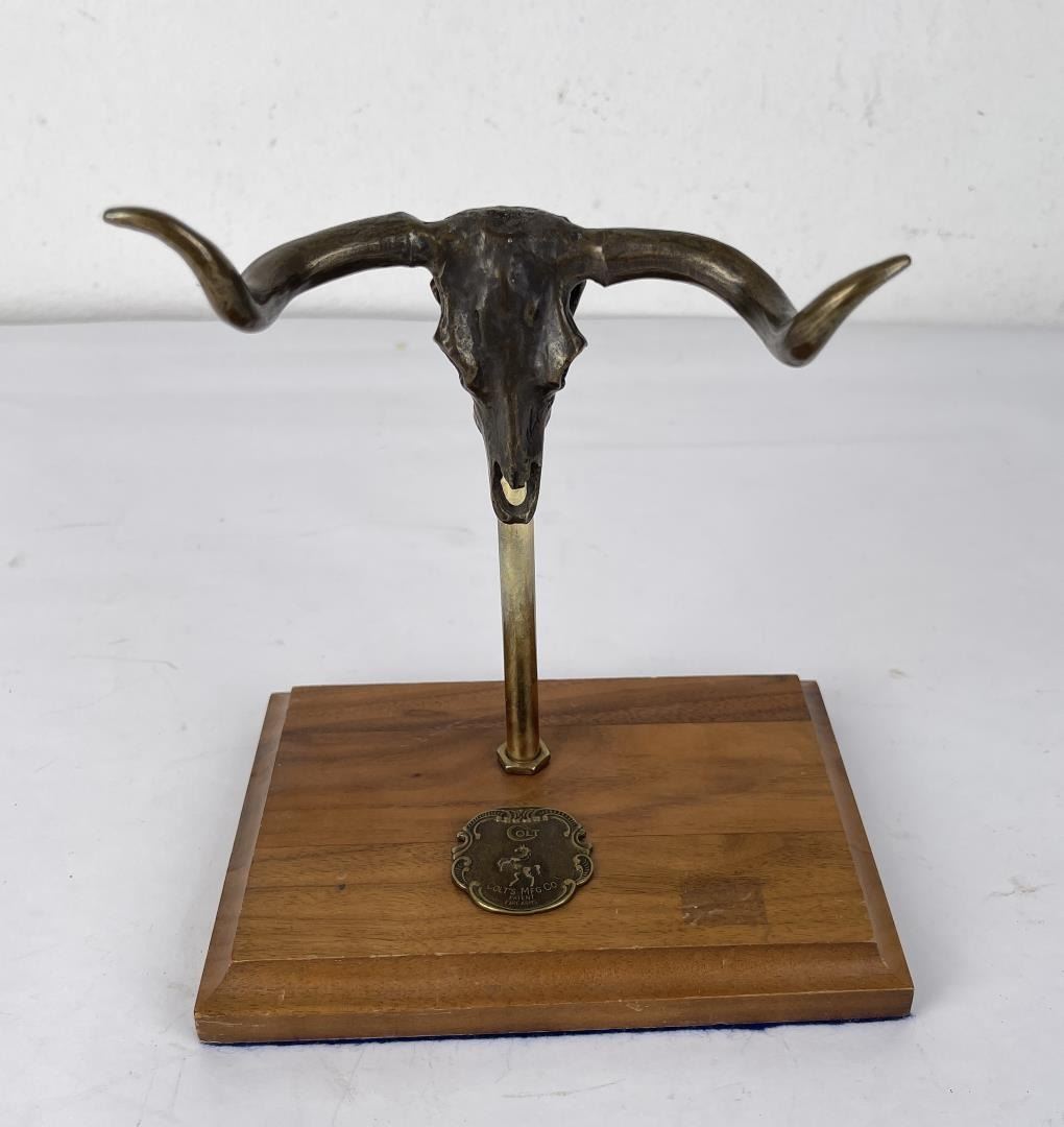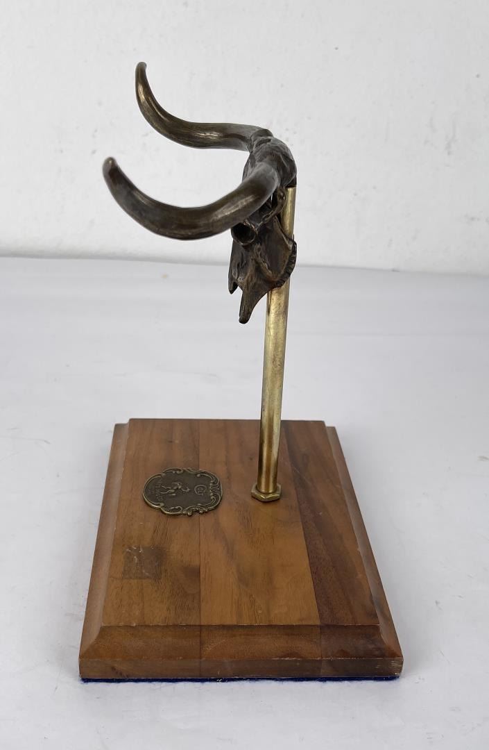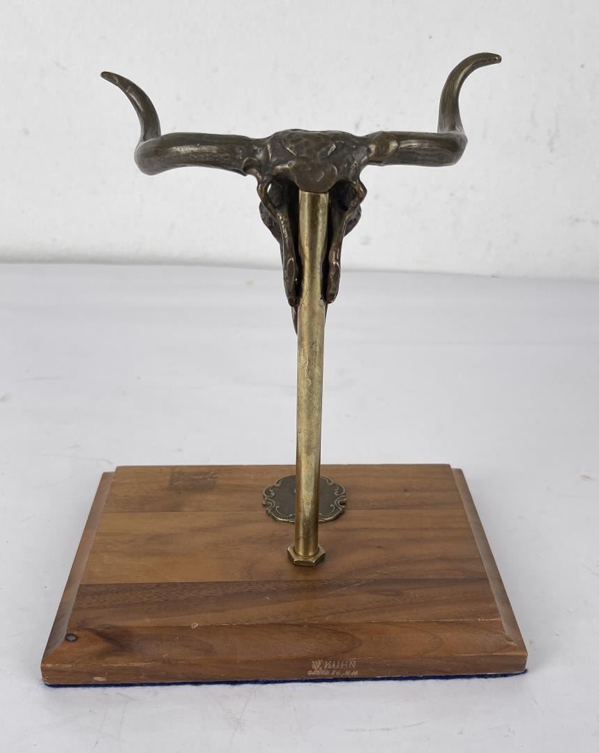 Nice piece. Custom made. Bronze steer head, can be used with revolvers or spurs. Made by W. Kuhn of Santa Fe New Mexico.