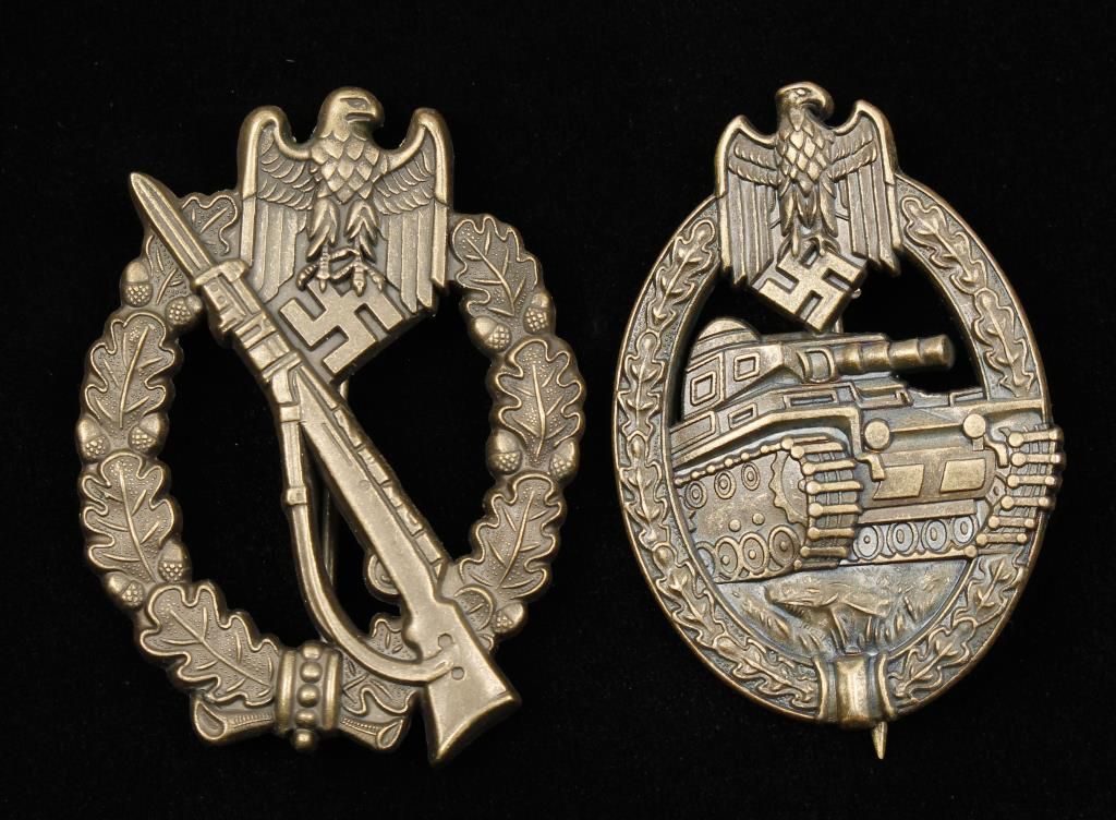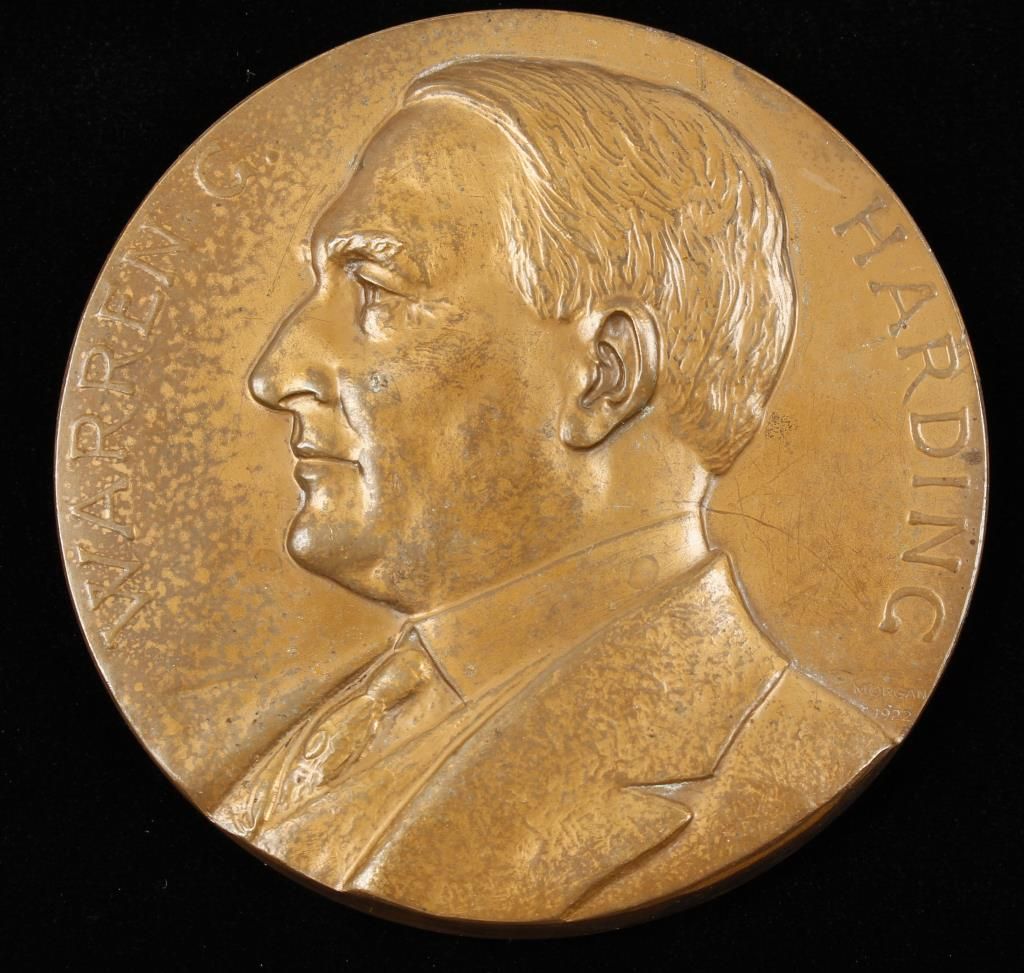(1)US President Warren G Harding Medallion. Measures 3" in diameter. The front shows a profile of Harding. The reverse side reads "Inaugurated President of the United States Mar 4,1921 Died Aug 2 1923." Solid bronze construction. (1) Luftwaffe Glider Pilot Badge. The reverse is maker marked 'BSW in a three leaf clover. Has a thin vertical pin back. Two piece two domed rivet construction. (1) German Bronze Tank Assault Badge. The reverse is maker marked 'HA'. (1)Included is an Army Bronze Infantry Assault Badge. Maker marked 'RS'. Both have a thin vertical pin back. Solid bronze construction. Offered "as is", we don't guarantee the authenticity of this item, please do your research. All sales are final.