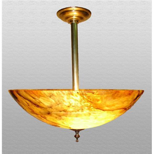 This pendant will look grate in a low ceiling house or apartment. It will be shipped in two crates, one with the alabaster component the other one with the bronze component. Some assembly will be required. The shipping cost within USA is $ 100.00. This item was rewired to USA standars.Due to the nature of alabaster stone the pictures may not accurately represented the color and pattern of the alabaster.