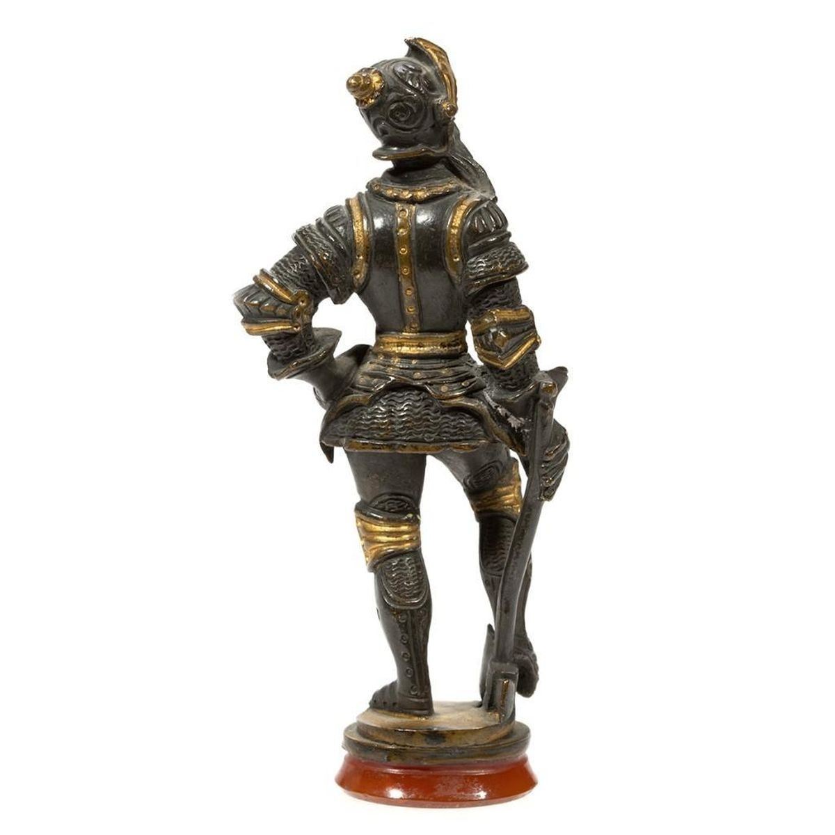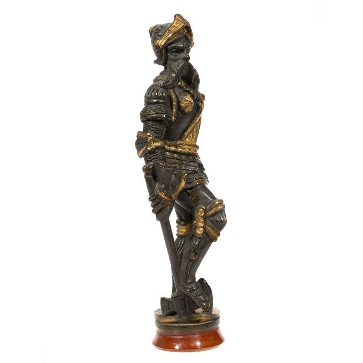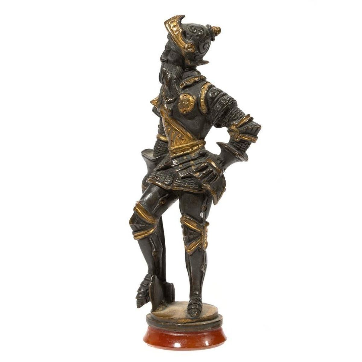 19th-century bronze standing figure with axe in full armor 4in. h.