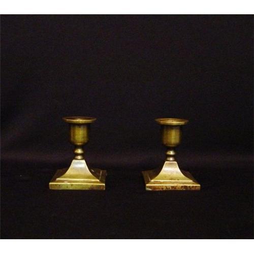 Rare miniature candlestick in bronze reach of square forms and aged antique patina.Dimension height 3" width 2 1/2".