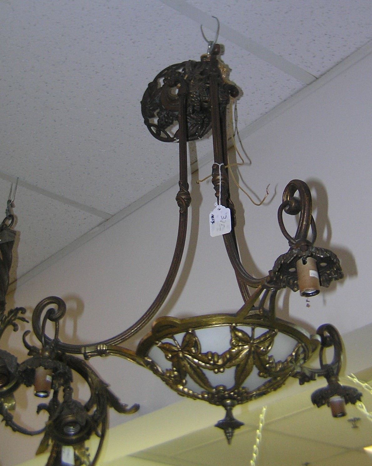 Solid bronze chandelier with grape and leaf decorations est. value $400.00-$500.00