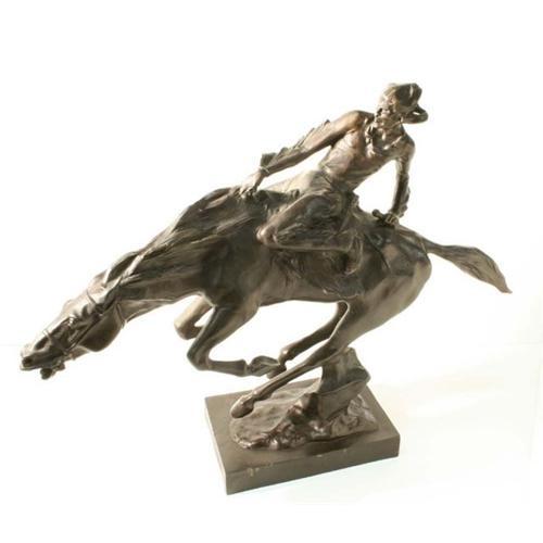 This is a very impressive bronze that captures the intense action of the man and the horse. The accuracy of anatomy and scale that Fach achieved is remarkable. This sculpture exhibits midair movement that enhances the sense of motion. This incredible bronze measures 15? x 17.5? x 5.75?, is a great example of artistic mastery, and is set at a great price.