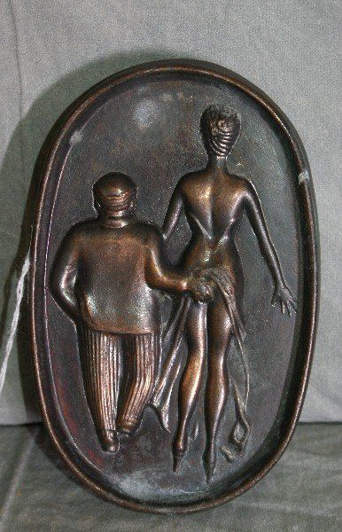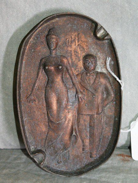 Bronze erotic two sided ashe tray. H:5.5" W:3.5" .