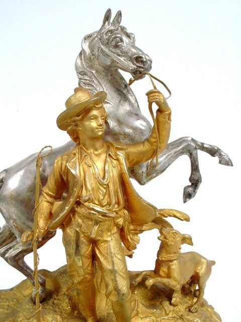 Depicting "Boy with horse & dog". Approx. 18.5" H x 17" W x 7" D.